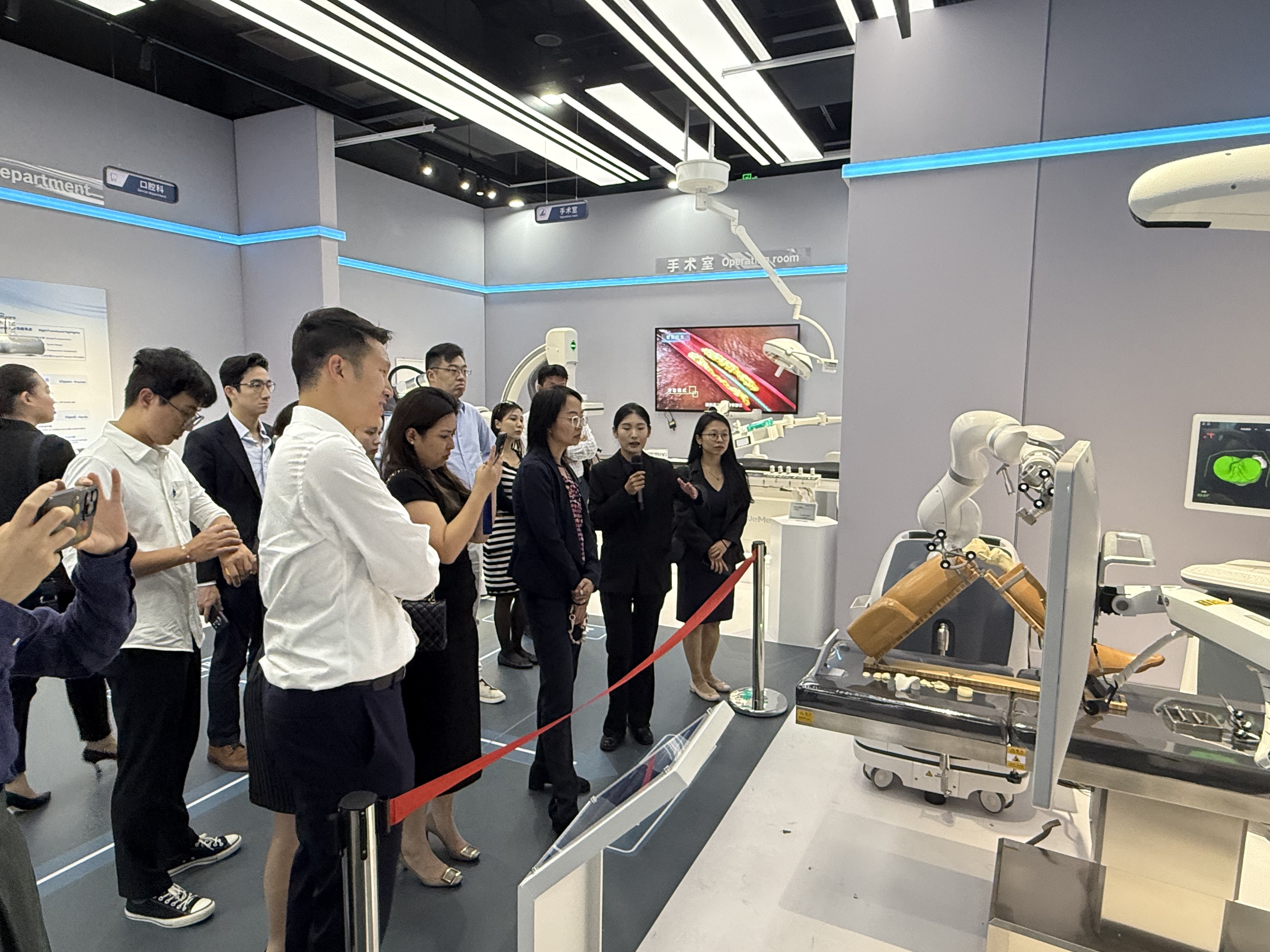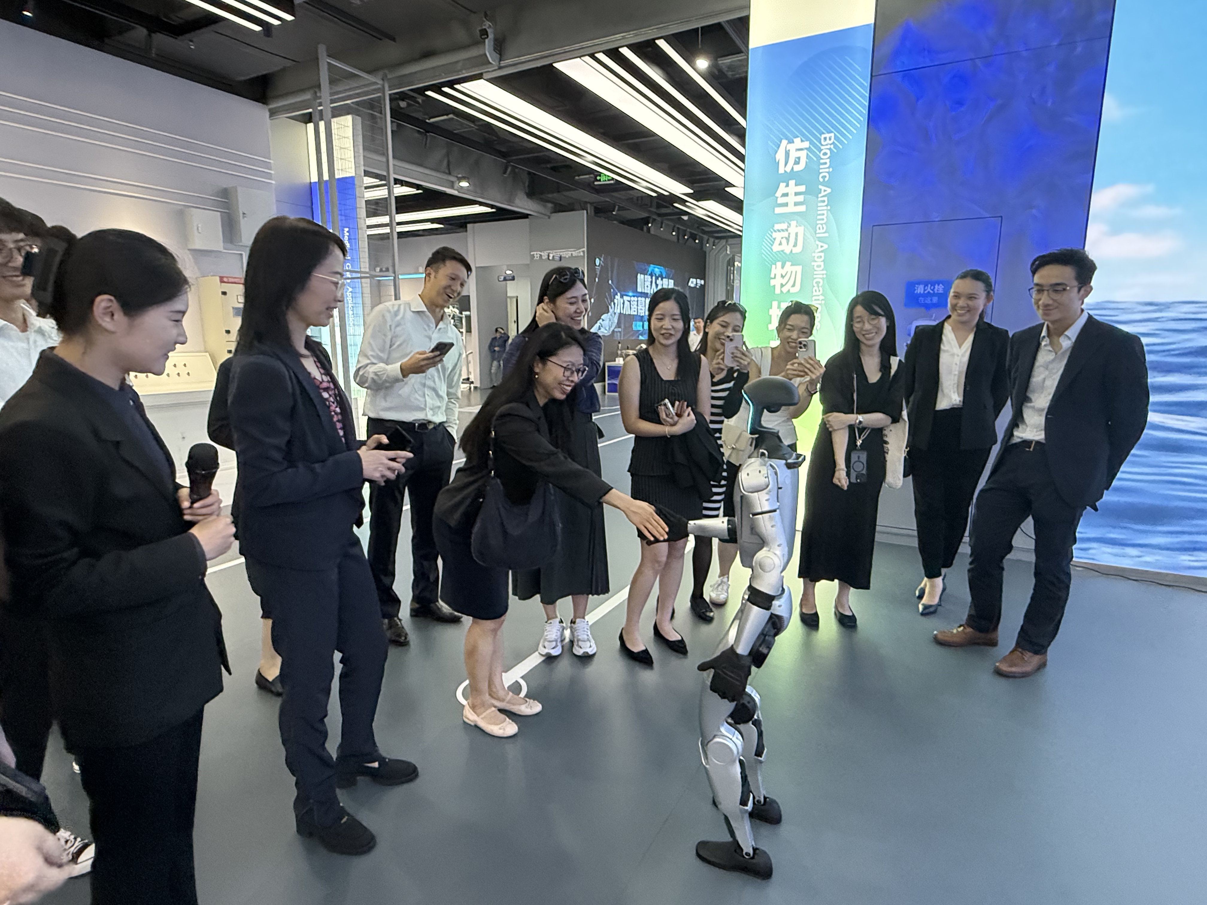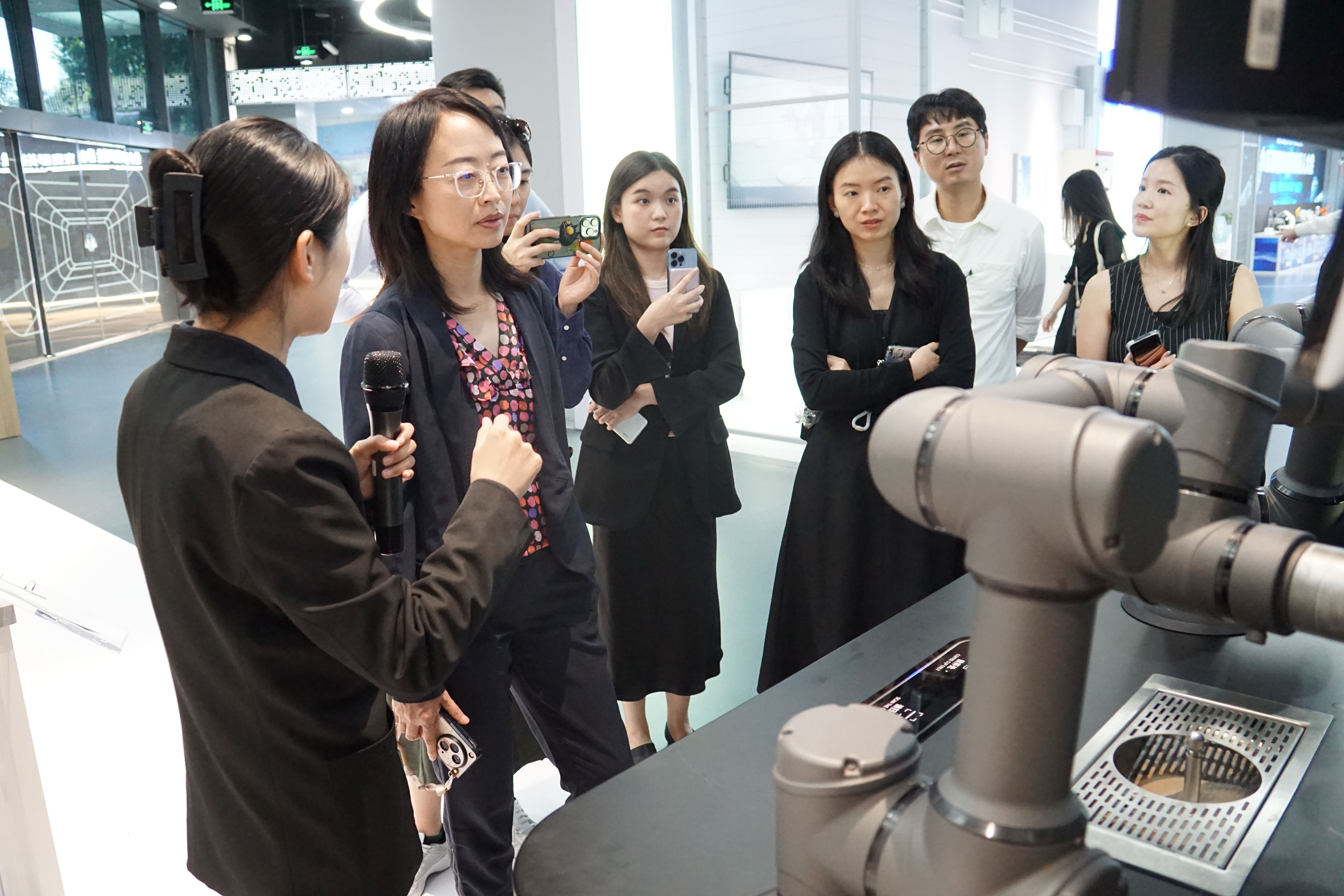 團員們下午到達位於通州的機器人大世界,各色設備讓團員們連連驚嘆「科幻走向現實」。大家見到5分鐘出「大師級」手術方案的AI骨科手術機器人、與「杭州六小龍」之一宇樹科技的人形機器人握手打招呼、品嘗一杯由機器人特調的香濃咖啡,再聽智能仿真機器人「小七」暢談國際調解院與香港之緣。這場沉浸式互動,讓一眾團員真切感受到國家AI科技矚目的發展成果,正深刻改善人們的生活。