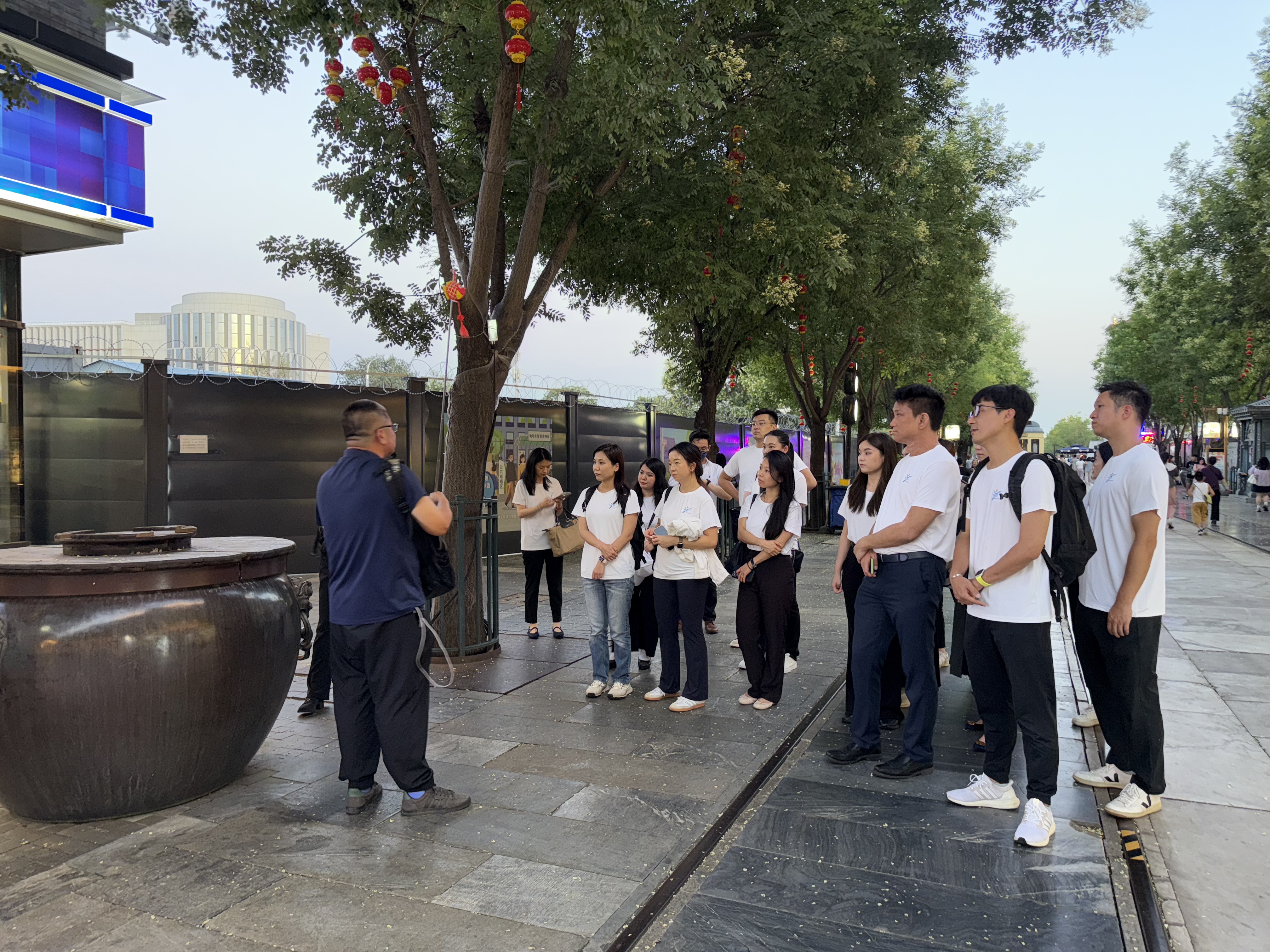 當日稍晚,參訪團來到前門大街,看到「鐺鐺車」從身邊緩慢駛過,老字號店舖林立兩旁,團員們於市井吆喝中一窺老北京味道,感悟今昔蛻變的歷史脈絡。