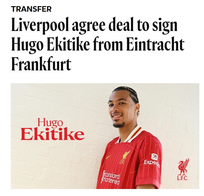 大公文匯全媒體報道,利物浦、AC米蘭、阿仙奴及熱刺共4隊歐洲勁旅,即將於啟德體育園同場獻技。利物浦最新宣布簽下法蘭克福射手伊基迪克(Hugo Ekitike),並於官網透露伊基迪克會立即飛往香港與球隊會合加入亞洲行。香港球迷有福,有望於本周六(26日)啟德主埸館「渣打盃—利物浦vsAC米蘭」一役,親睹伊基迪克身首次披上紅軍戰袍出戰。