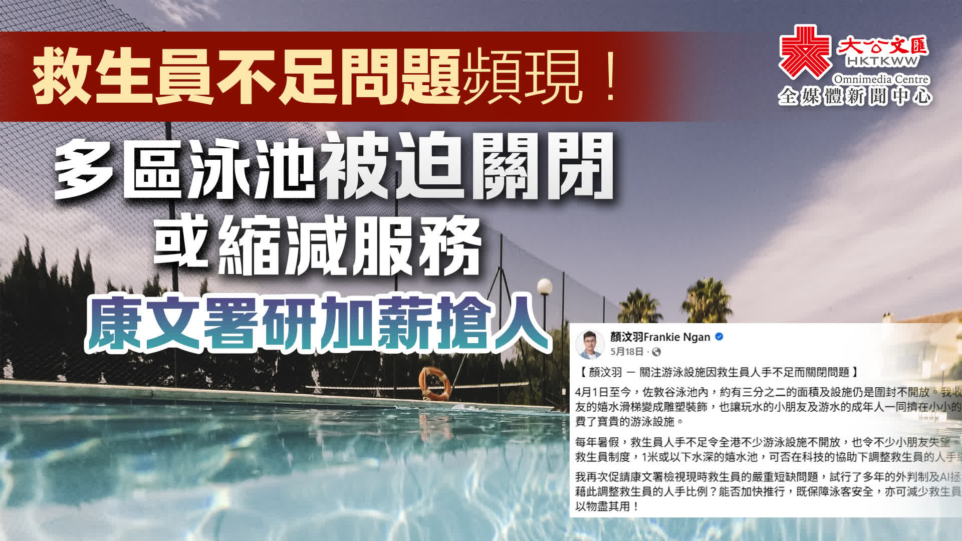 關鍵詞:救生員縮減服務康文署泳池