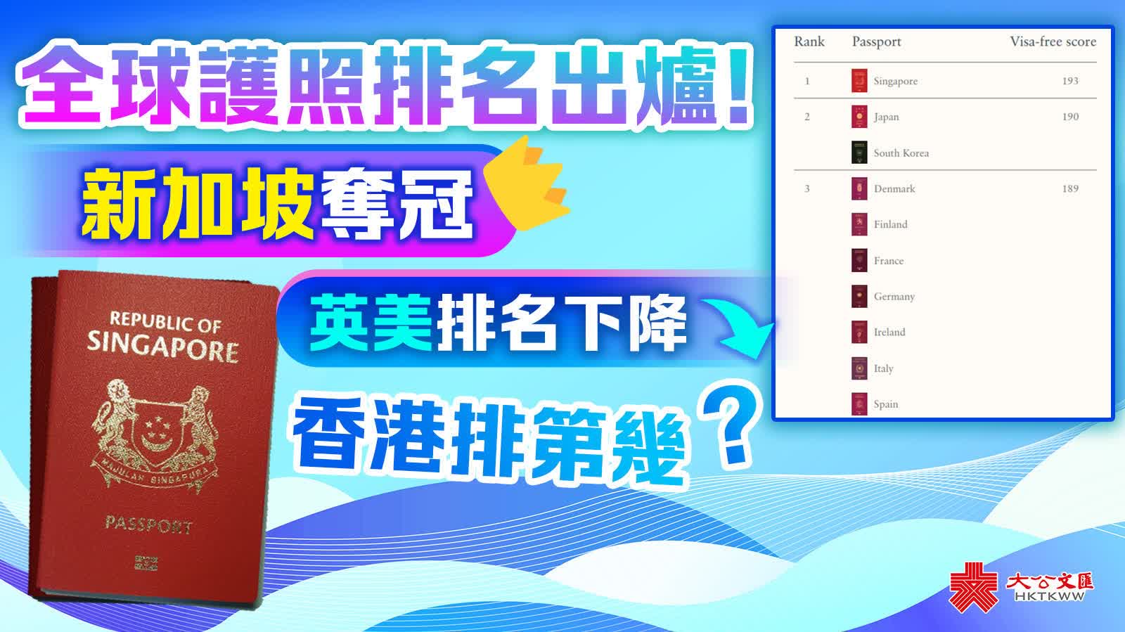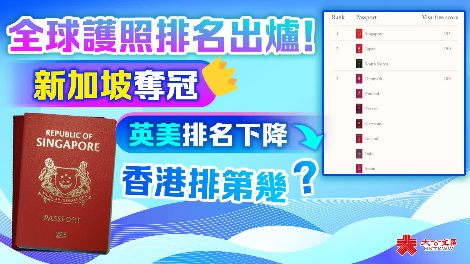 大公文匯全媒體報道,英國諮詢公司Henley & Partners日前發布2025年「恒理護照指數」(或稱「亨利護照指數」),根據國際航空運輸協會(IATA)數據進行評估,依據可免簽證前往的目的地數量為各地護照排名得出結果。其中新加坡護照因可以免簽前往全球227個目的地中的193個地方而奪冠,香港特區護照則可以免簽169個地方排名17,較去年升2名。