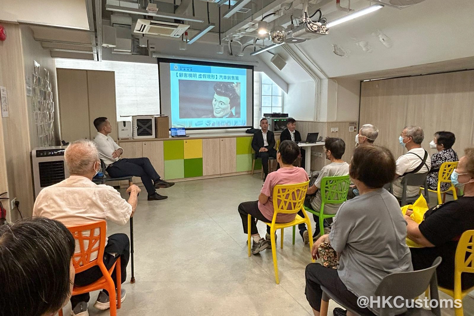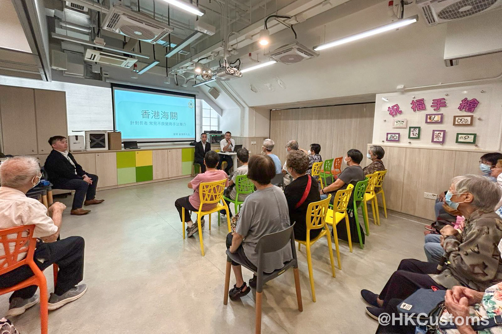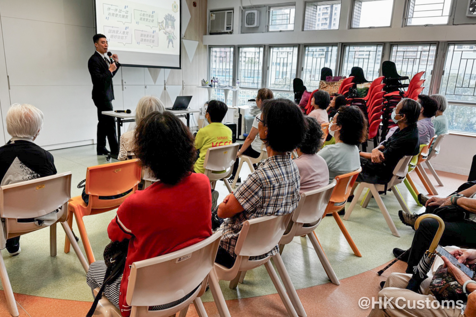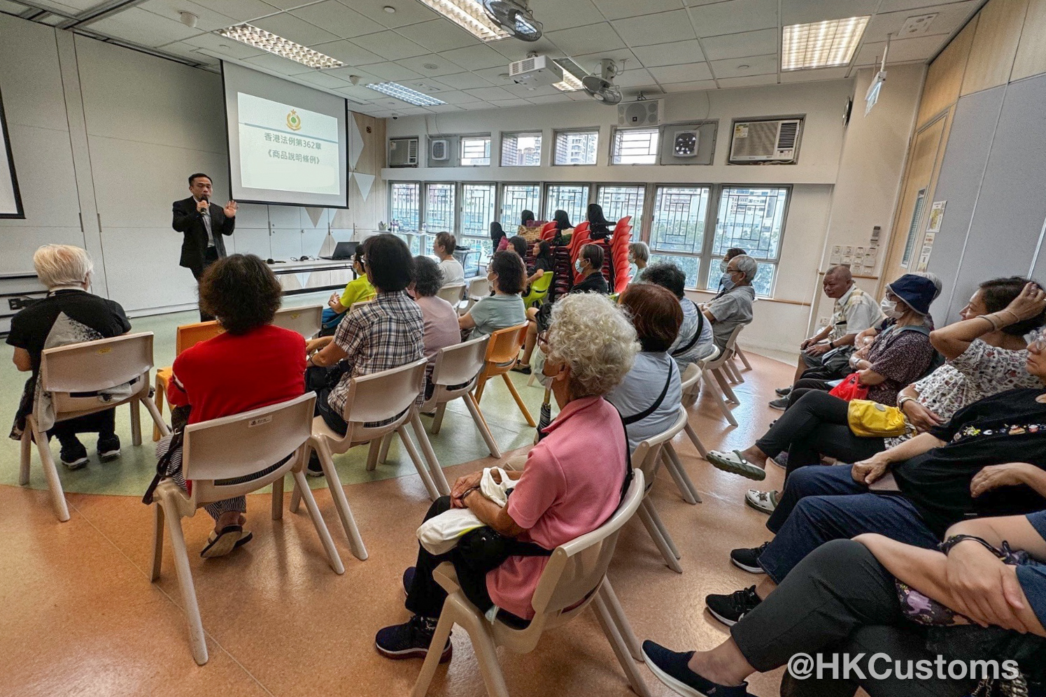 香港海關作為《商品說明條例》(《條例》)的主要執法機關,透過執法行動、合規推廣及宣傳教育三管齊下,致力打擊針對「銀髮族」的不良營商手法。上月,海關人員到訪位於何文田及青衣的長者中心,向長者介紹《條例》,派發宣傳單張,播放短片和分享精明消費小貼士,提醒長者選購保健產品時要保持警惕,貨比三家,切勿盲目相信產品在廣告或健康講座所聲稱的功效。