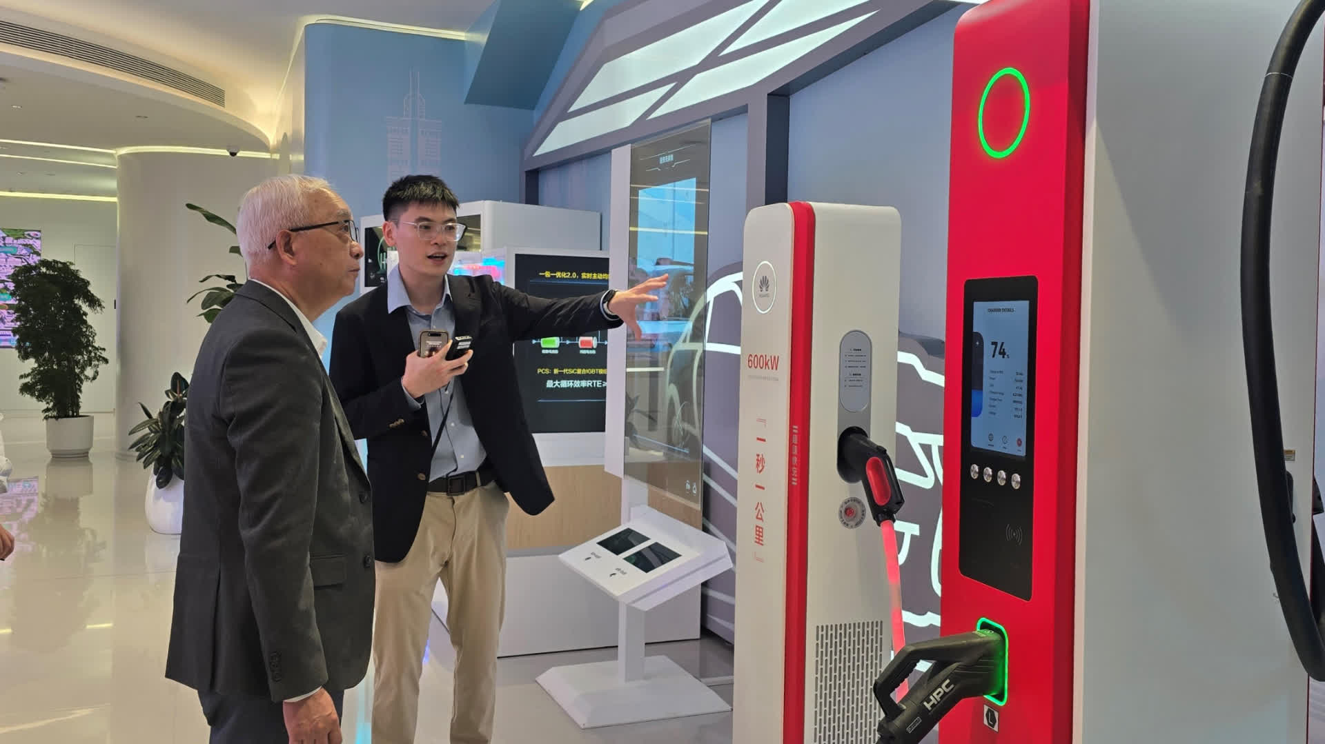 謝展寰首先到訪華為數字能源技術有限公司,了解該企業在電動車超級充電(超充)、儲能、電動車自動充電等領域的最新發展,以及向市場提供的最新減碳方案。