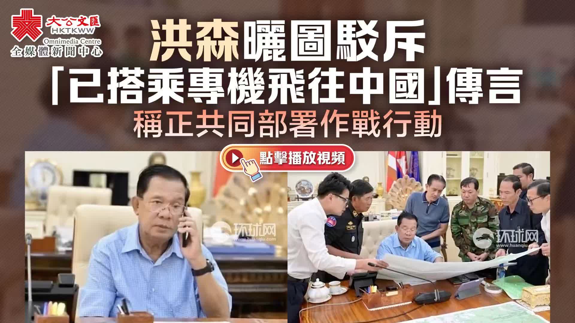 大公文匯全媒體報道,據《柬中時報》24日報道,針對部分泰國媒體炒作「洪森已搭乘專機飛往中國」的不實傳言,柬埔寨參議院主席洪森當天下午在Facebook上發文,駁斥泰媒蓄意造謠,誤導輿論,稱自邊境衝突爆發以來,始終在柬埔寨與國家領導層共同部署作戰行動。