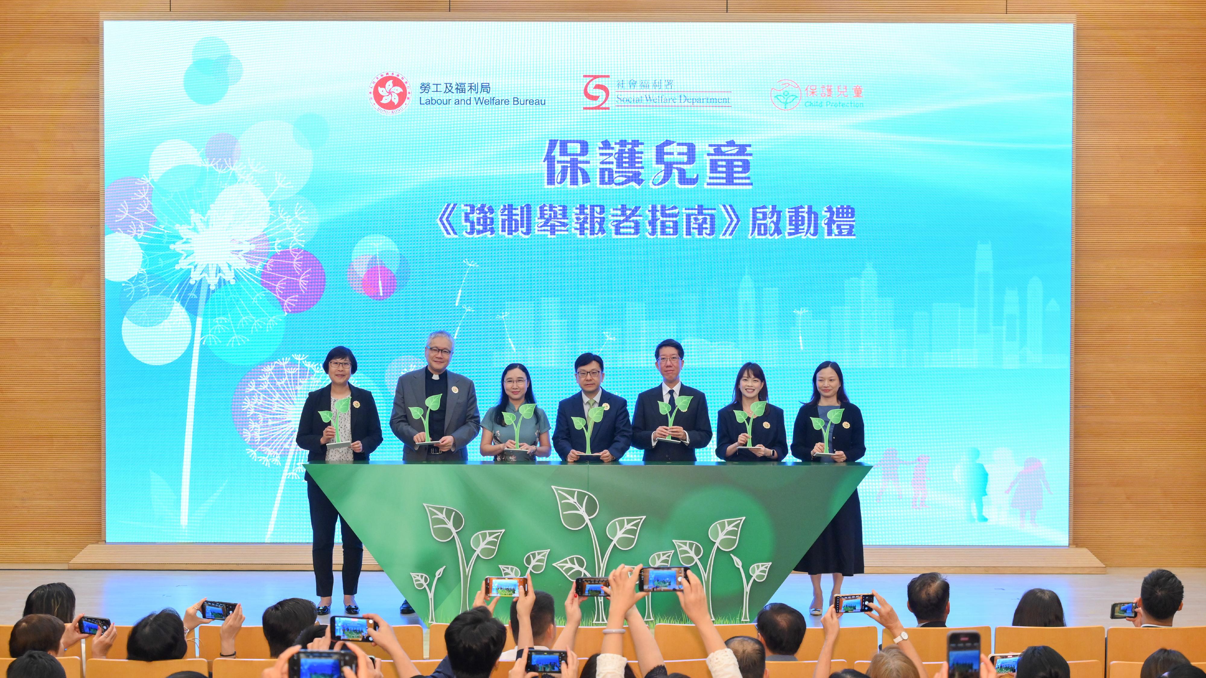 勞工及福利局局長孫玉菡今日(七月二十四日)主持保護兒童—《強制舉報者指南》(《指南》)啟動禮,宣布供強制舉報者參考的《指南》正式推出。