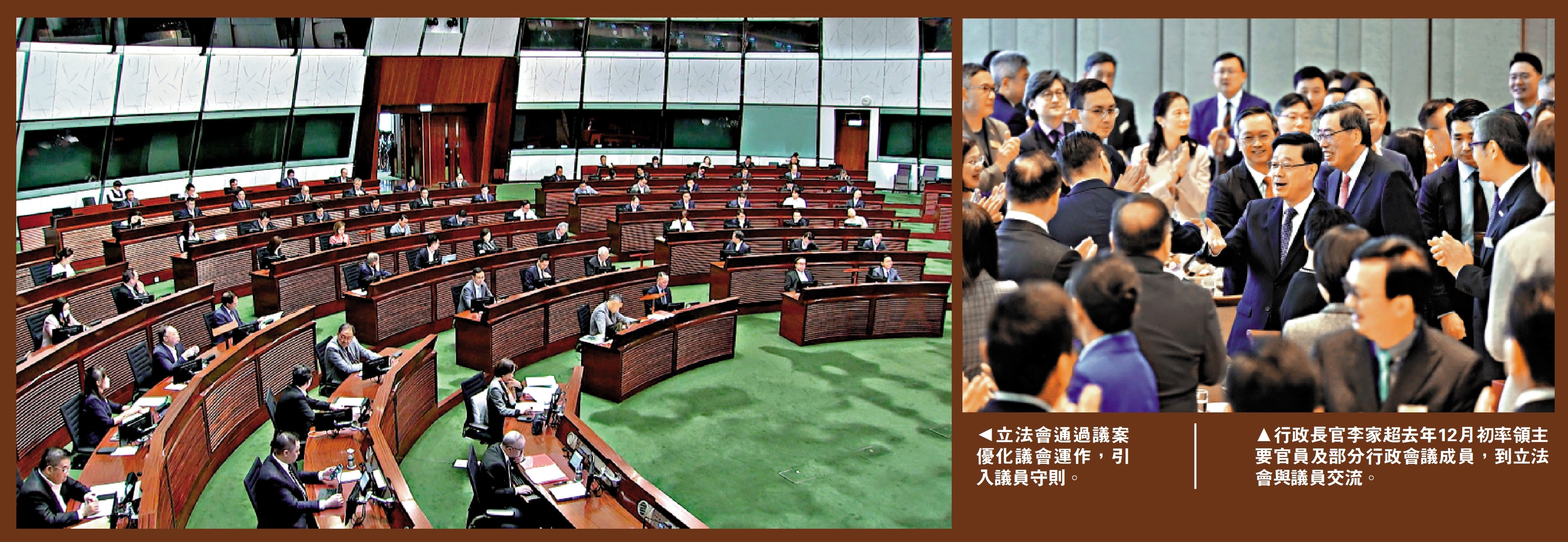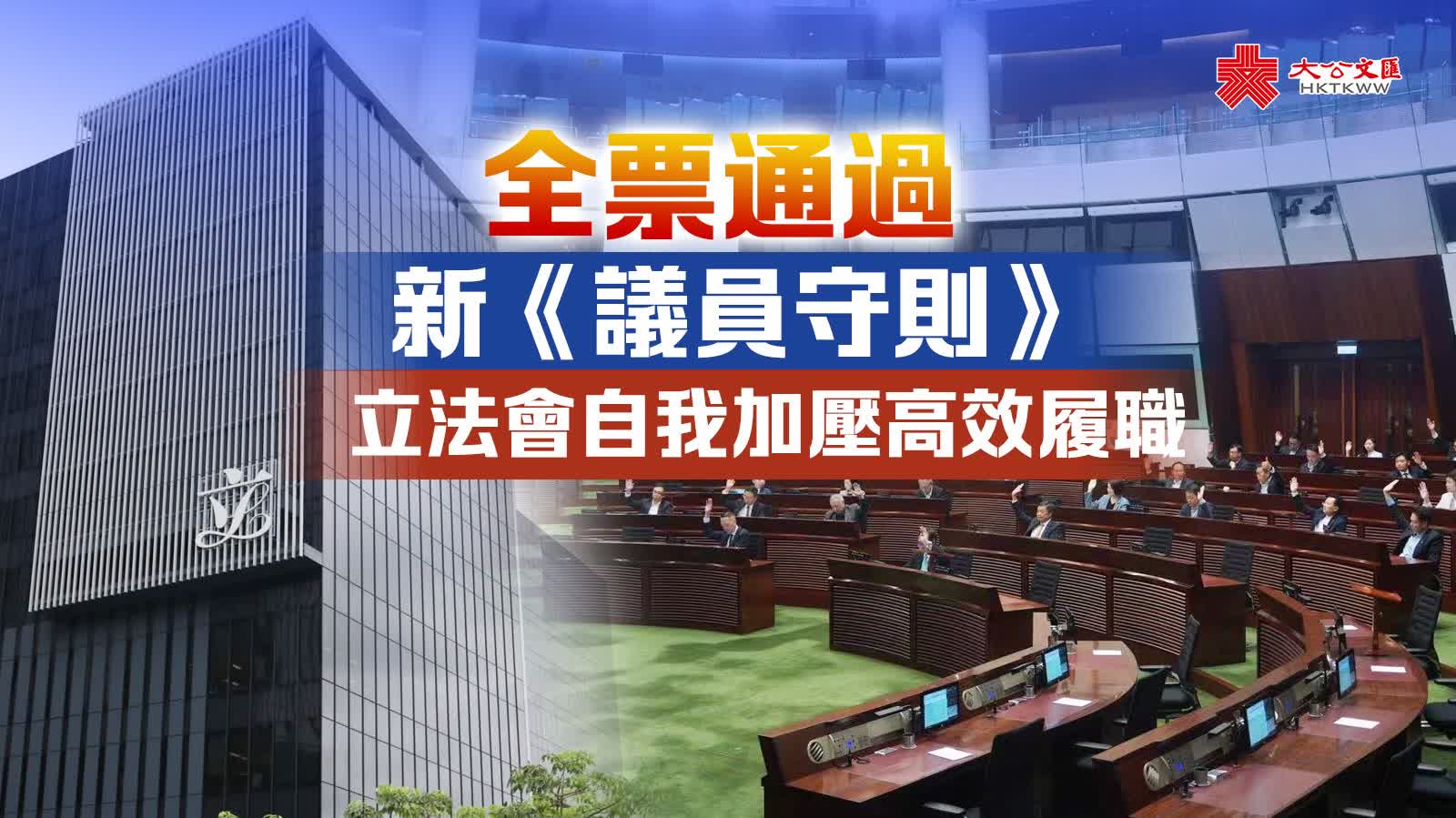 本屆立法會是完善選舉制度、落實「愛國者治港」原則後的首屆立法會,議會一掃過去泛政治化、濫用程序和拖延及破壞政府施政等亂象,讓議政作風煥然一新。是次由立法會主動提出引入議員守則,得到全體議員一致支持,展現了完善立法會自我監察、提升議會的效益和問責性的共識。