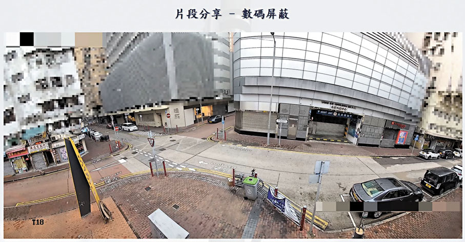 梁彥文強調,銳眼鏡頭並非一安裝便可以應用,因警方在不同方面都有嚴謹要求,包括需要花較多時間及技術做影像矇化處理,減少對市民私隱的影響。他展示位於佐敦吳松街一段銳眼片段,見到鏡頭涉及私人地方的部分已經被數碼屏蔽,警員在查案時無法看到這部分的私人地方。