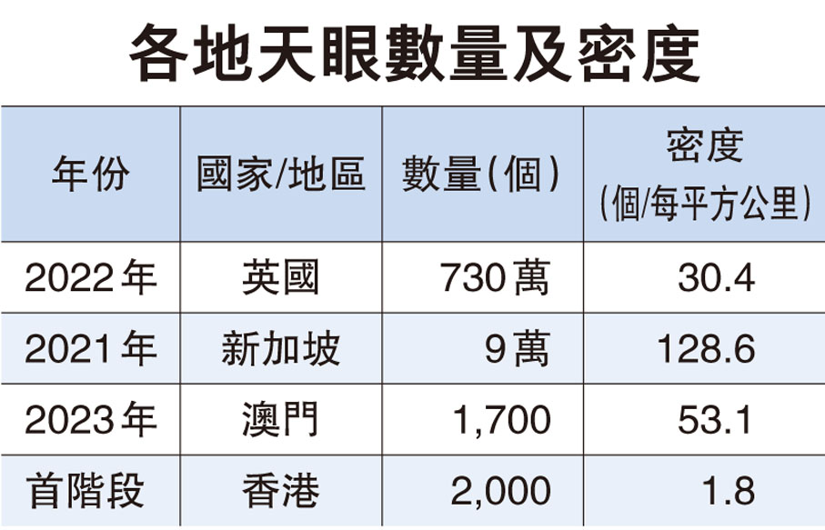 在公共地方安裝閉路電視(通稱天眼)監察系統已是全球大趨勢,英美兩國更是最早利用天眼提升警務效率。據英國保安業界估計,現時全英國約有2,500萬個天眼鏡頭,以英國約6,500萬人口計算,平均2.6人有1個。美國現時約有8,500萬個天眼鏡頭,平均3.8人有1個,比內地平均4.5人有1個還高。