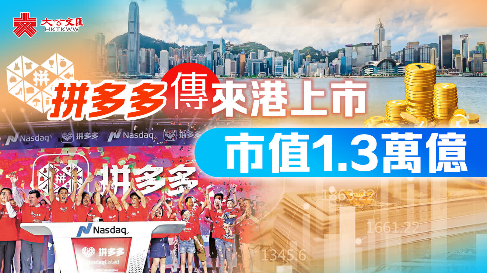 若果拼多多落實來港上市,將可為港股帶來多1隻逾萬億港元市值的股份。昨日拼多多市值約1,681.71億美元,折合約13,100億港元。