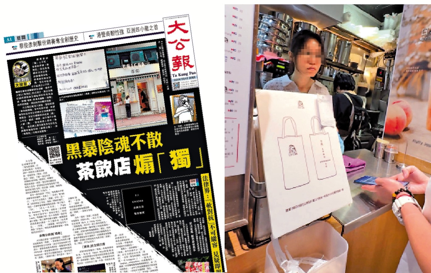 《大公報》昨日頭版報道位於上環的茶飲店「茶痴」涉「軟對抗」的劣行,店內公然張貼2019年「黑暴」期間支持暴徒的「打氣卡」。報道刊出後,該店昨日照常營業,惟已不見兩張「打氣卡」蹤影。