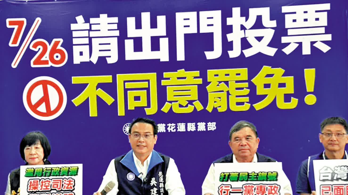(大公報記者 蘇榕蓉)7月26日(周六),備受矚目的台灣「大罷免」將舉行投票。此輪投票共有24位國民黨「立委」上榜。屆時如果同意罷免的人數多於不同意的人數,且同意票高於選區投票人的25%,罷免即成立。島內輿論指出,此次投票結果將牽動島內政治格局和兩岸關係走向。若民進黨推動的「大罷免」成功,多位國民黨「立委」遭罷免,民進黨賴清德當局恐將更加橫行霸道,進一步在「台獨」死路上狂奔,台海局勢將更加緊張;如果「大罷免」失敗,將重挫民進黨的囂張氣焰,有利國民黨等加強監督民進黨賴清德當局。