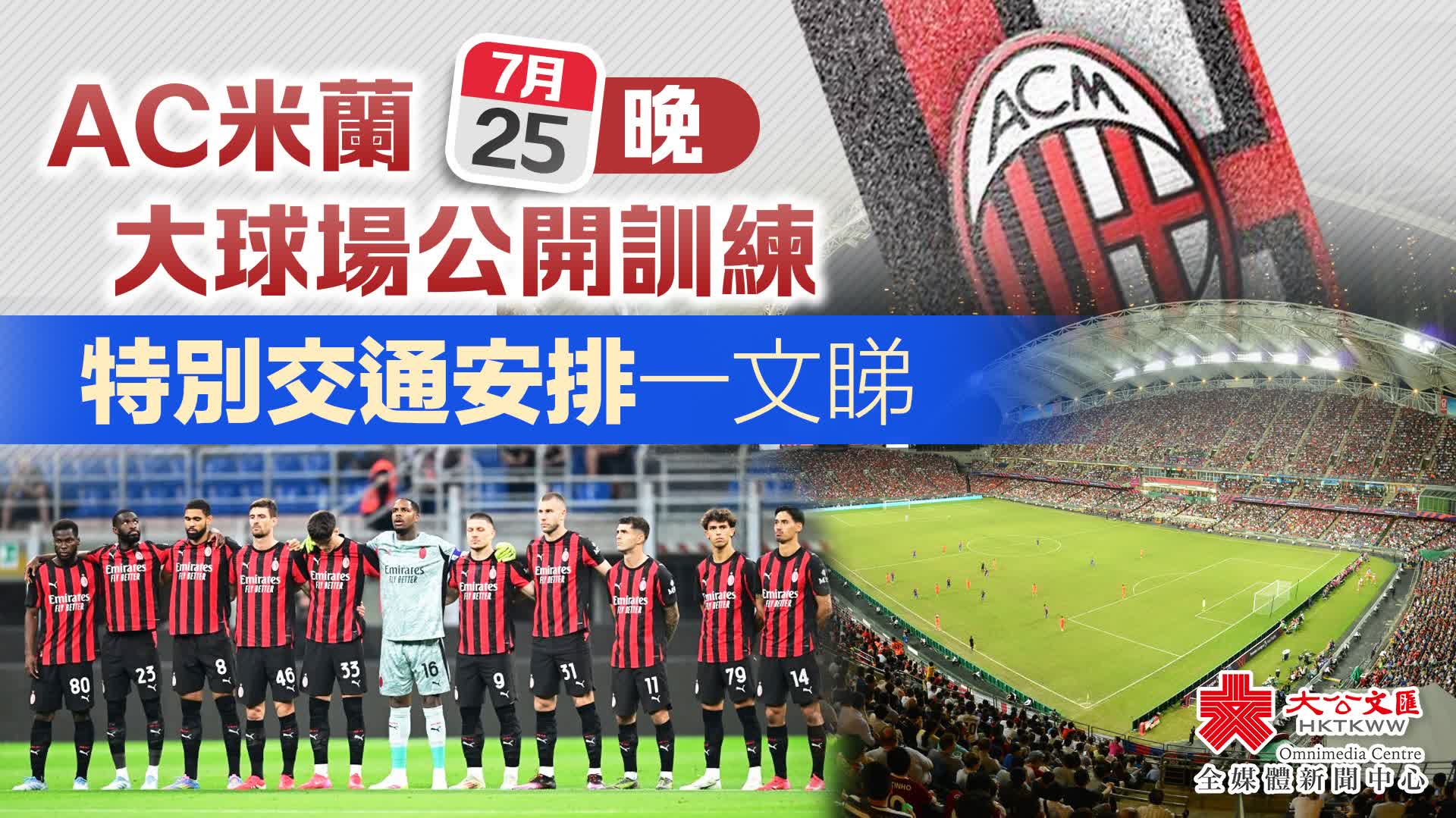 大公文匯全媒體報道,AC米蘭是全世界獲得主要洲際和大洲球會賽事冠軍的球隊之一,其球迷人數名列歐洲第7位,達到1840萬人,是歐洲最受歡迎的意大利球會。AC米蘭今晚(25日)將在香港大球場舉行公開訓練,警方將於掃桿埔及銅鑼灣實施特別交通安排,以配合活動展開。