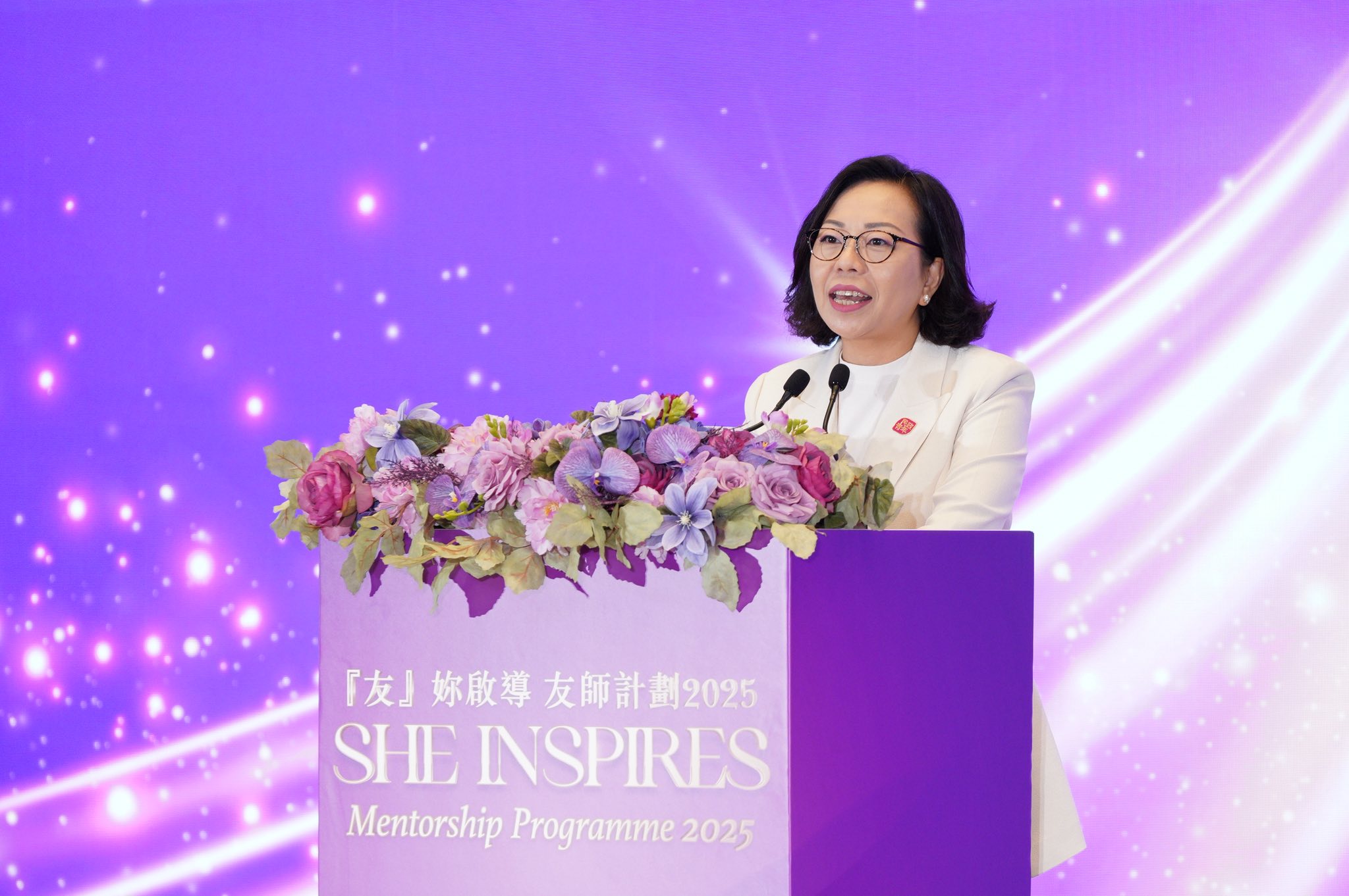 局長感謝各位友師對計劃的支持,亦很高興看到年輕女性的踴躍參與。計劃名稱「『友』妳啟導」特別選用朋友的「友」字,是希望在傳統師生關係外,友師與學員可以建立一種亦師亦友的夥伴關係。相信友師會為學員「傳道、授業、解惑」,幫助學員在迷茫時找到出路,在困難中重拾信心。局長亦鼓勵學員以開放積極的心態主動學習,並以友師為楷模,將所學回饋社會,讓這份「她力量」薪火相傳。