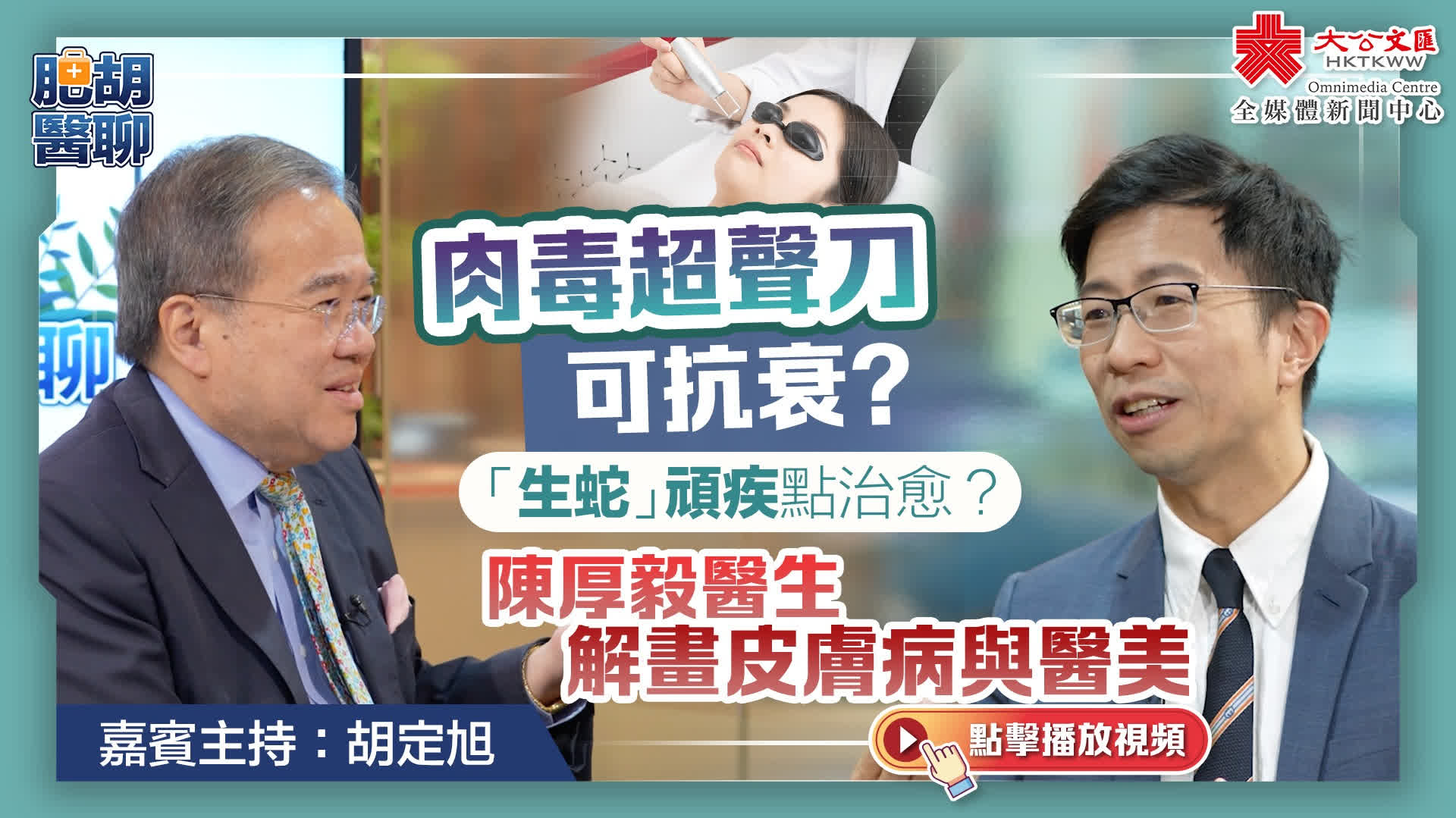 在常年炎熱潮濕的香港,癬病與色斑等皮膚問題是許多市民的健康困擾,皮膚癌更成香港十大癌症之一。不過,隨着科技進步,人們在治療皮膚疾病上有了更多選擇,醫學美容更成為愛美人士保持皮膚狀態的心頭好。大公文匯全媒體醫療健康資訊節目《肥胡醫聊》本期繼續邀請本港皮膚科專科醫生陳厚毅,剖析色斑、「香港腳」等皮膚問題,更揭秘肉毒桿菌注射、射頻治療等熱門醫美項目效果,提供關乎健康與美麗的實用資訊。