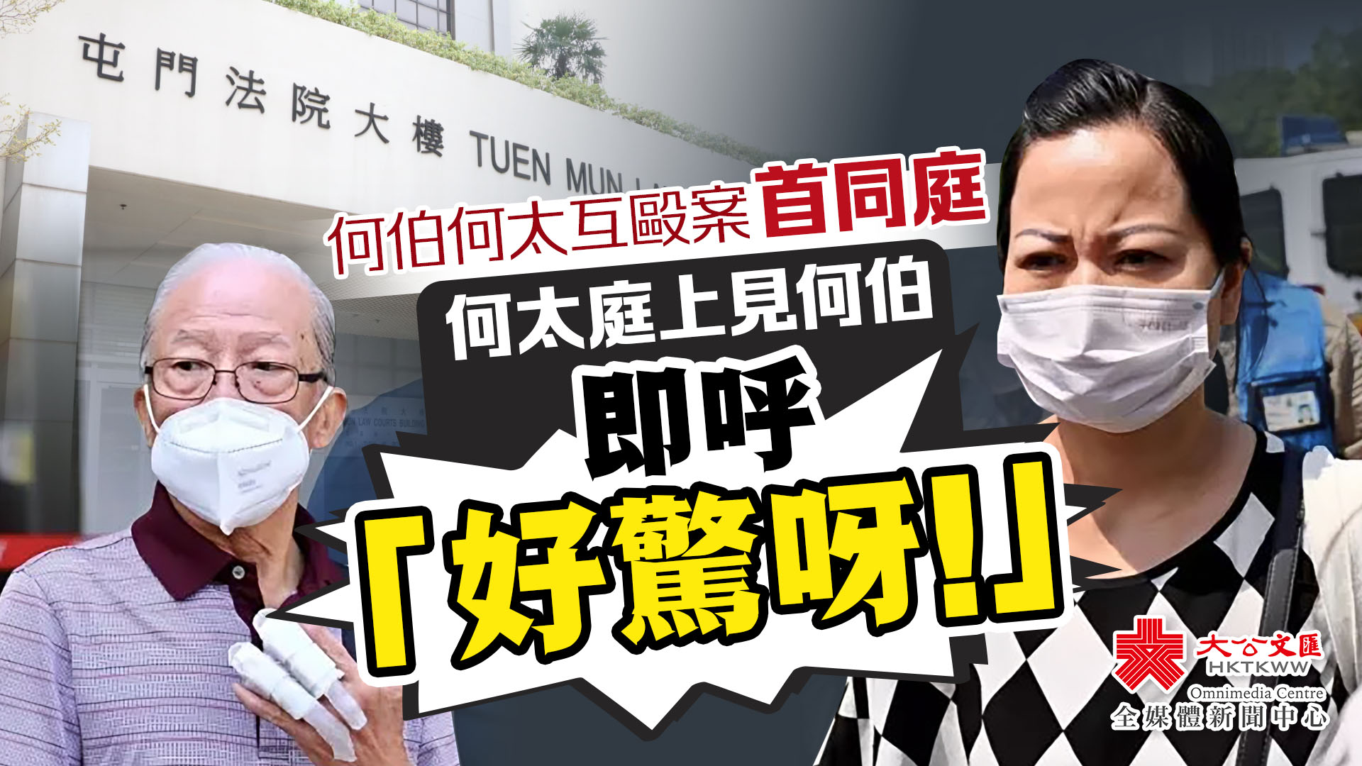 據港媒報道,案件開始前,夫婦相隔庭內一條走廊分坐兩側,未見有明顯互望或交流,「何伯」的2隻手指仍然包紮住。庭內記者席和旁聽席均全坐滿,庭外更有數十似是欲來旁聽的市民未能入座。