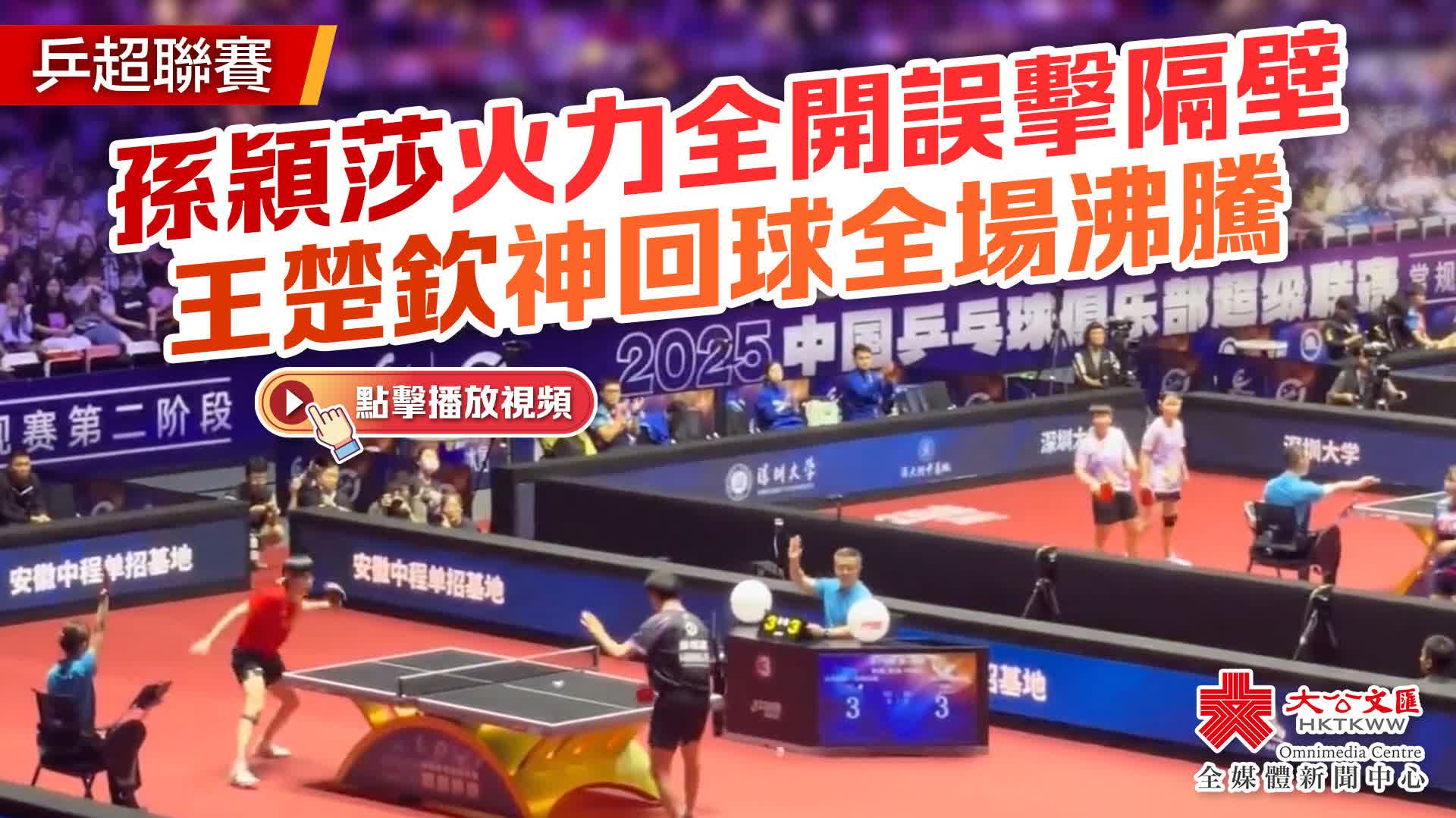 大公文匯全媒體報道,7月25日,2025賽季中國乒乓球俱樂部超級聯賽常規賽第二階段在廈門開打,在第一盤女雙第四局比賽中,孫穎莎因力度過大,直接把球打向隔壁王楚欽的球台,王楚欽看到球過來,撿起後一球拍拍了回去。
