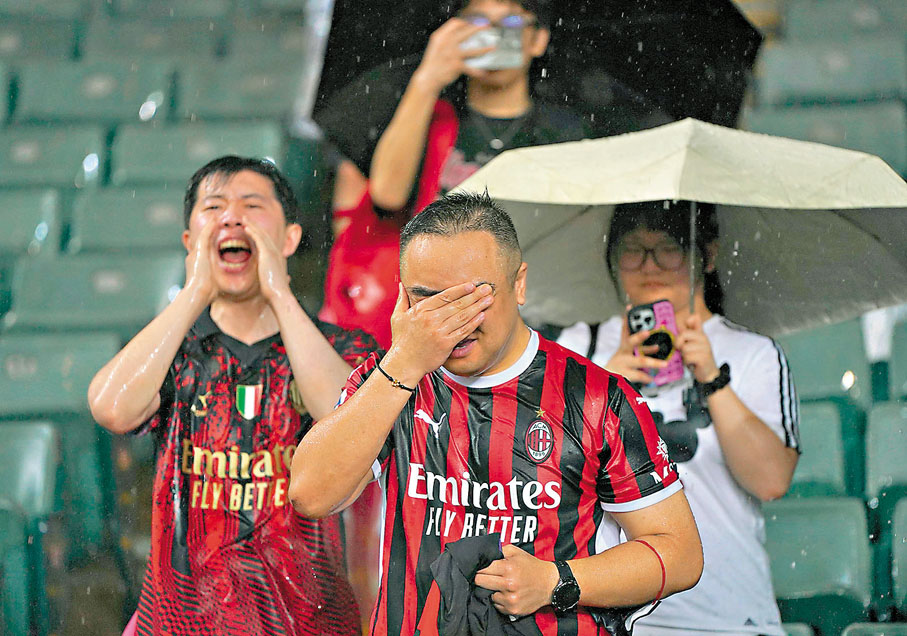 AC米蘭昨日在香港大球場公開操練,眾將甫登場已引起球迷們不斷歡呼喝彩,其中以拉菲爾利亞奧最受歡迎,有大批「粉絲」高喊他的名字希望吸引這位葡萄牙球星注意。雖然球員熱身僅15分鐘便因暴雨被迫返回更衣室,不過A米眾將未有讓冒雨支持的數百名球迷失望,待約45分鐘後雨勢稍減便返回球場繼續訓練,再次跑步熱身後立即進行隊內賽,45分鐘後完成訓練返回更衣室,基斯甸普列錫離開前有為球迷簽名,而拉菲爾利亞奧亦有與球迷自拍及簽名留念。