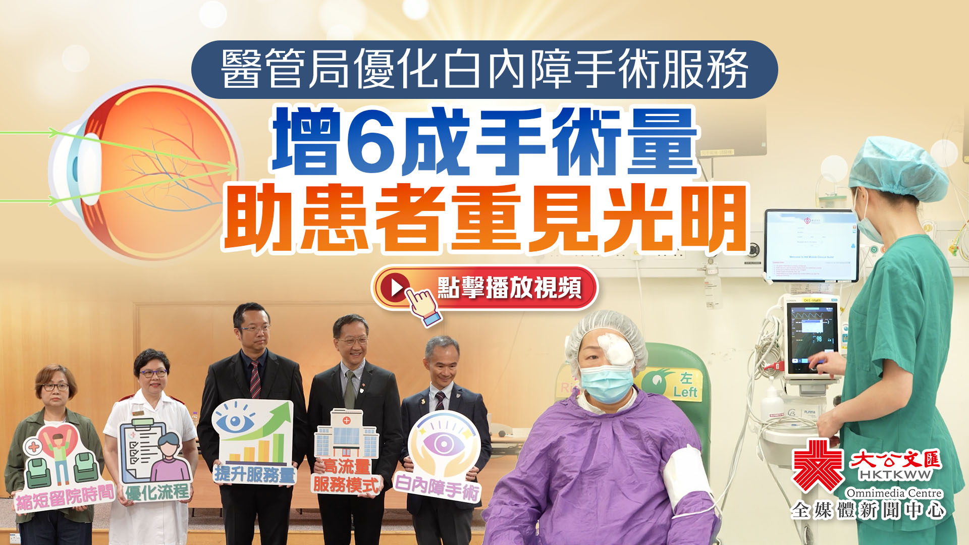 醫管局質素及安全總監黃立己指出,白內障是常見眼疾,患病機會隨年齡增長而上升。隨着人口老化,白內障手術需求預期持續增加。目前,醫管局每年約有2.5萬至3萬宗白內障新症,且部分以日間個案形式進行。截至今年6月30日,眼科輪候白內障手術的個案達65,944宗,整體輪候時間的第90個百分位數為37個月,即超過3年。