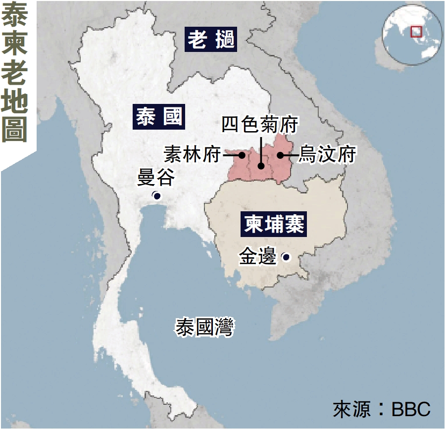 •泰國海軍26日發布消息稱,泰國出動F-16戰機和「鷹獅」戰機,對茄子山和塔莫安托寺附近柬埔寨軍事設施進行打擊。柬方稱,泰國海軍在柬埔寨戈公省沿海海域部署8艘軍艦。