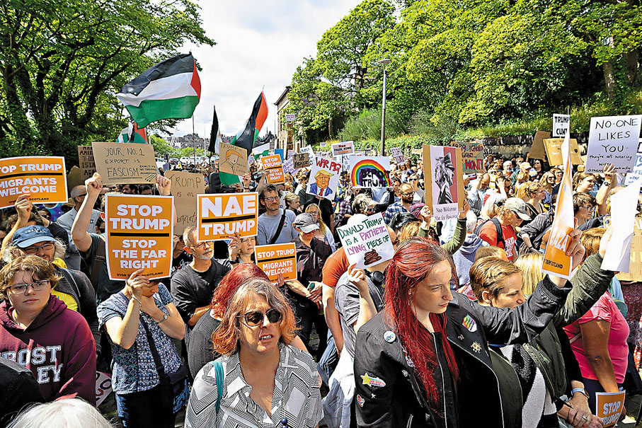 香港文匯報綜合報道,美國總統特朗普上周五(7月25日)抵達英國蘇格蘭,展開為期4天的度假訪問之旅,歐盟委員會主席馮德萊恩計劃周日與特朗普會晤,在8月1日美國「對等關稅」暫緩期屆滿前,就美歐磋商貿易協議作最後一搏。特朗普就美歐潛在貿易協議措辭反覆,最初宣稱協議達成幾率是五五開,隨後暗示歐盟若與日本一樣作出更多讓步,預計協議最終可以達成。