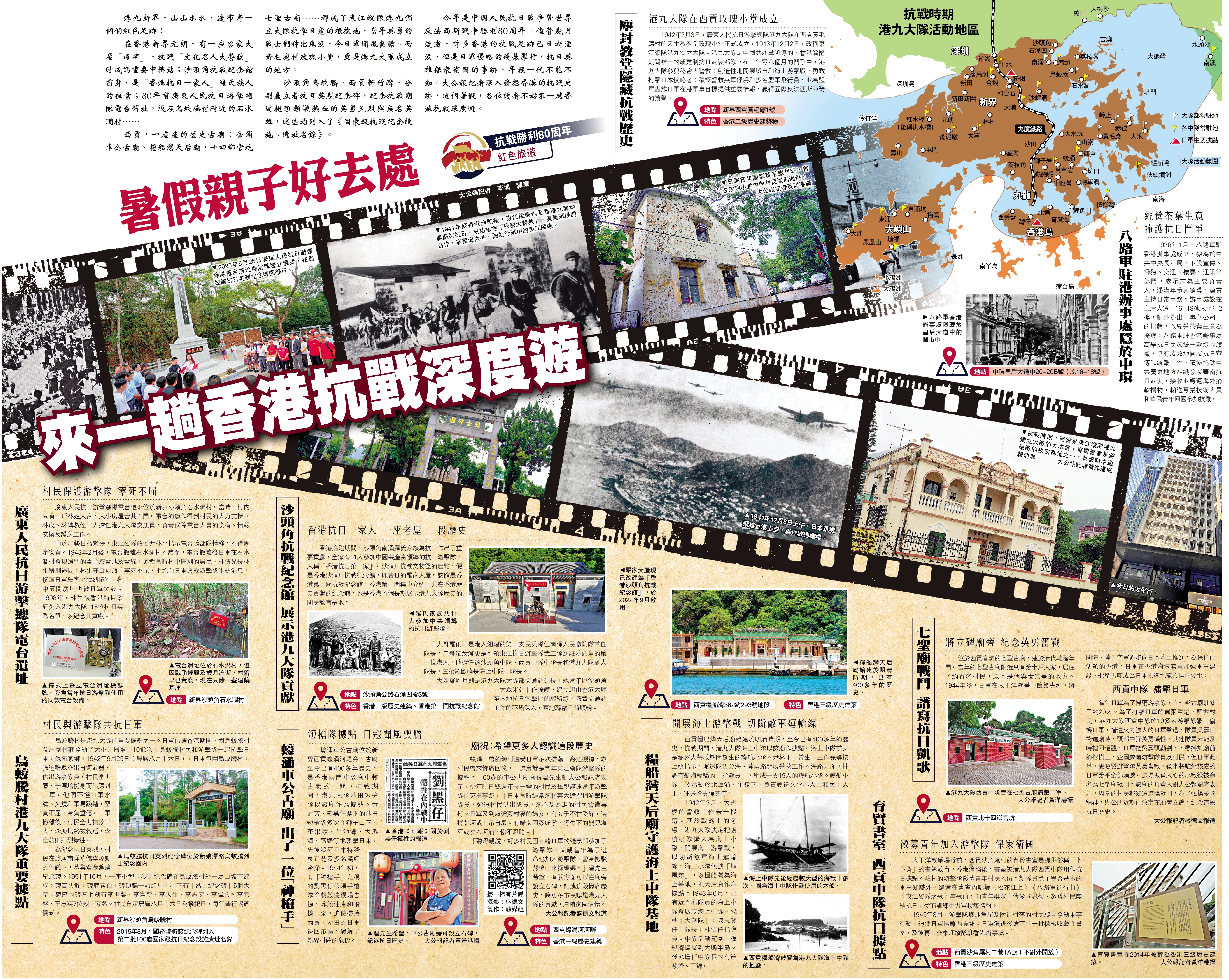 今年是中國人民抗日戰爭暨世界反法西斯戰爭勝利80周年。儘管歲月流逝,許多香港的抗戰足跡已日漸湮沒,但是日軍侵略的殘暴罪行,抗日英雄保家衛國的事跡,年輕一代不能不知。大公報記者深入發掘香港的抗戰史跡,這個暑假,各位讀者不妨來一趟香港抗戰深度遊。