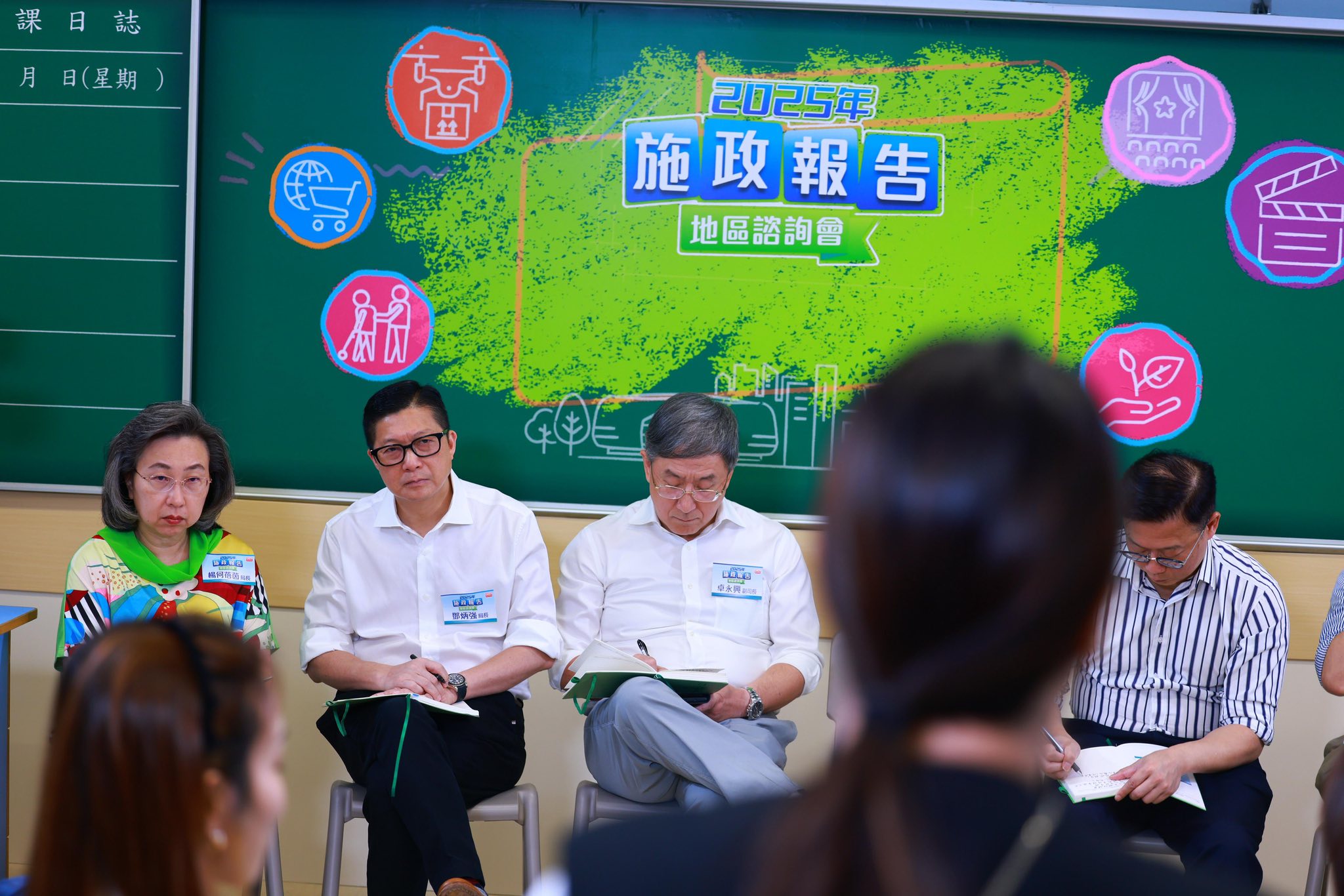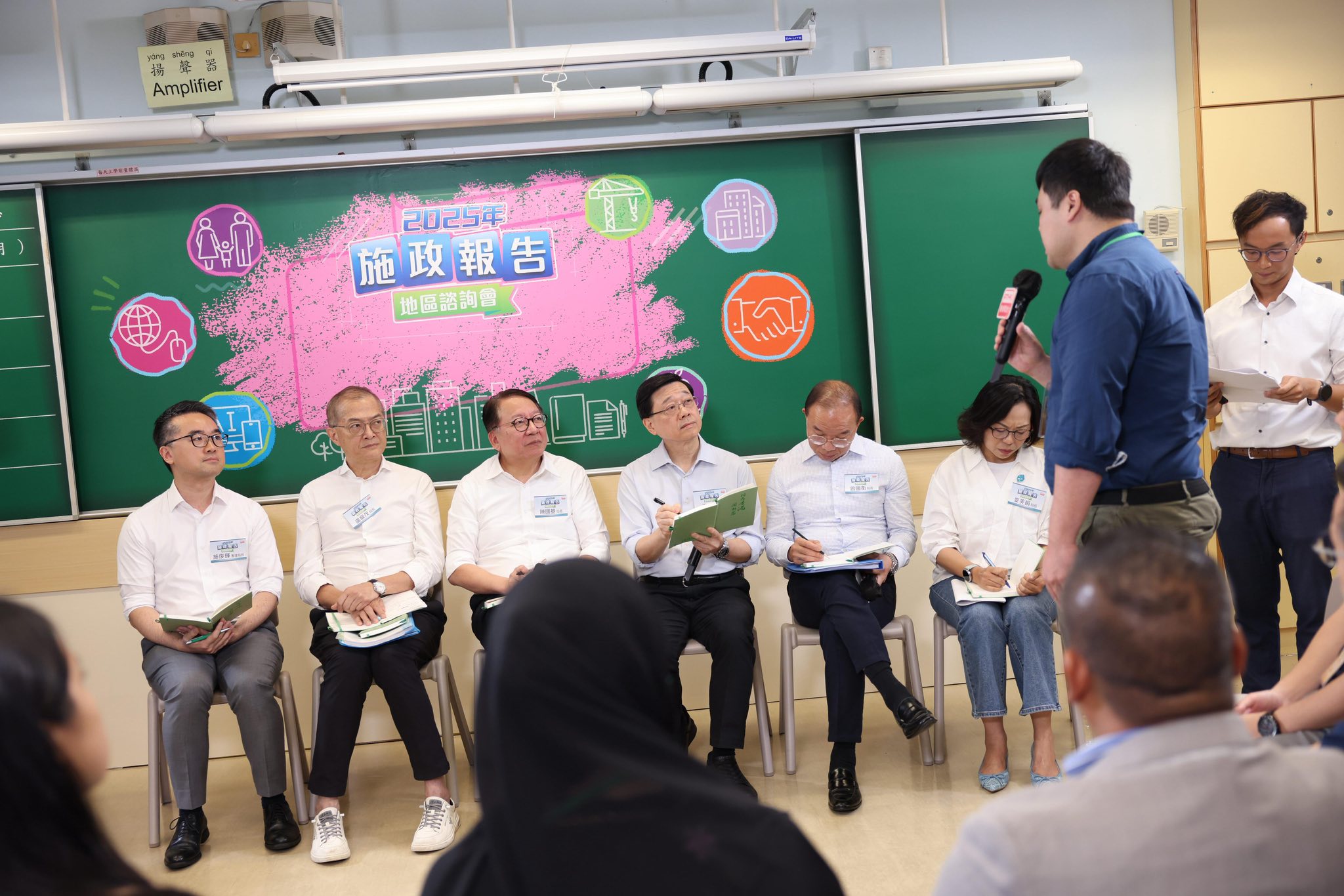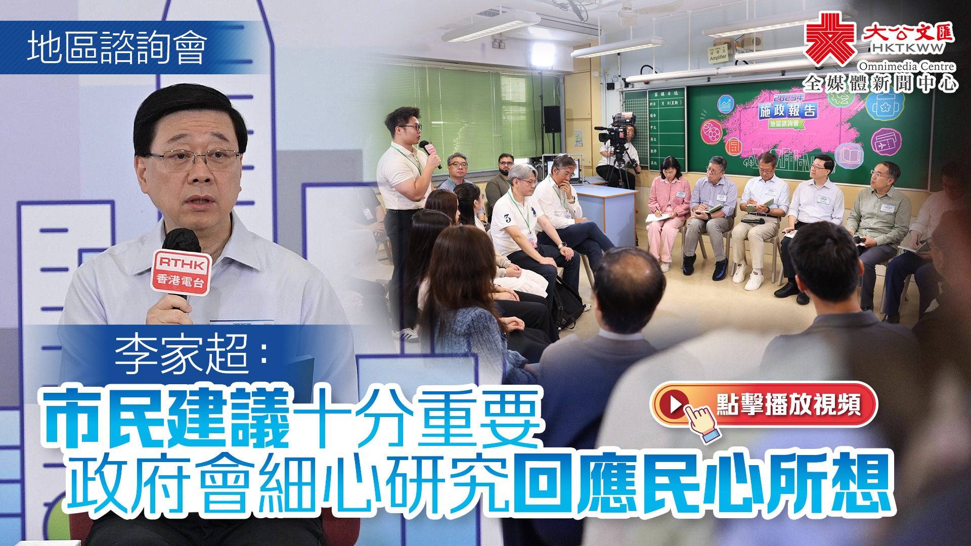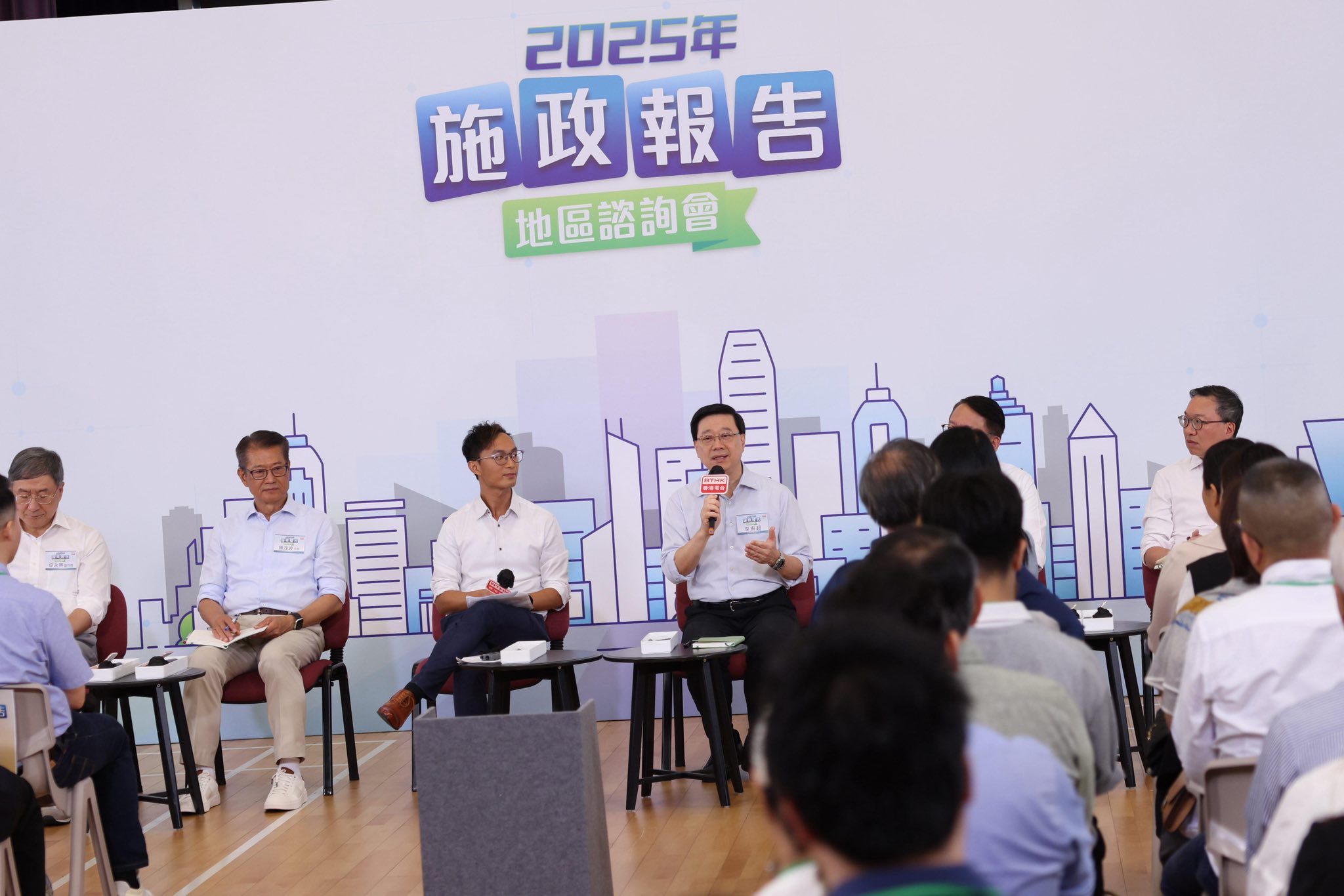 他提及,過去三年的施政報告,政府吸納了地區諮詢會不少寶貴意見。今天市民在諮詢會發言時亦都流露出對香港的關心、熱愛、期盼和信任,所表達的意見非常廣泛,涉及經濟發展、教育、醫療、房屋、保障本地勞工,以及地區環境等議題,政府之後都會仔細一一研究,並以提升市民幸福感、獲得感,以及社會關愛共融為目標來制定政策。
