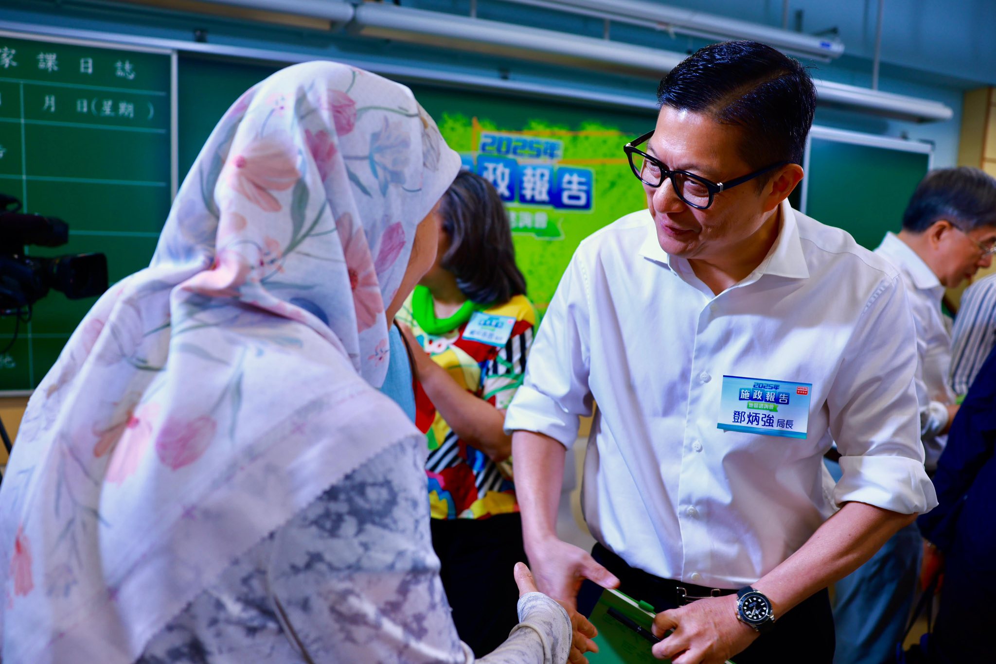 保安局局長鄧炳強今日一同出席首場地區諮詢會,他稱深感市民對民生同社區安全的重視,不少市民更會特意留下向他表達意見。他感謝每一位提出問題、期望同建議的市民,當局會積極跟進相關事宜,特別是涉及地區治安、防罪滅罪、網上防騙等建議,以此確保香港市民安居樂業。