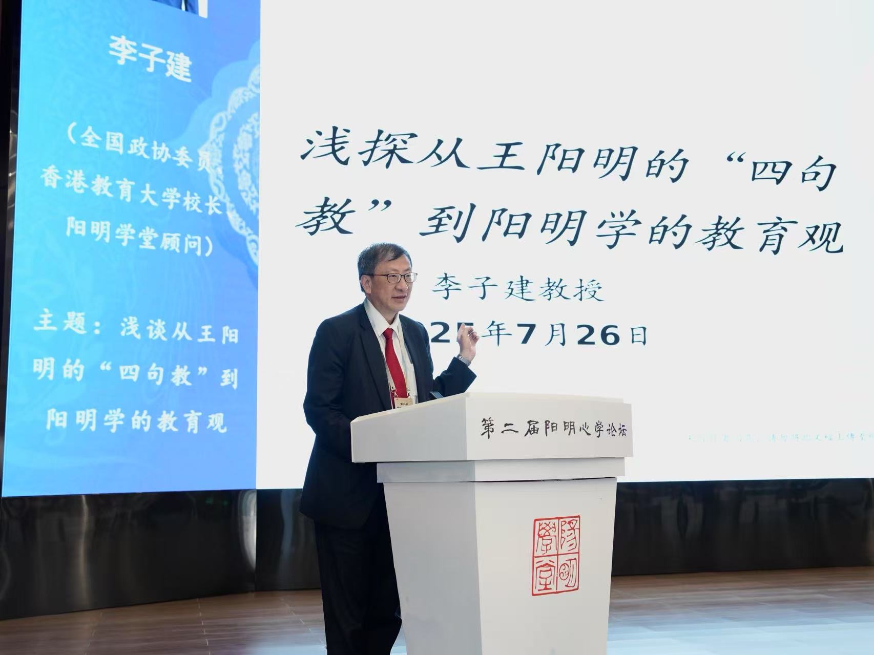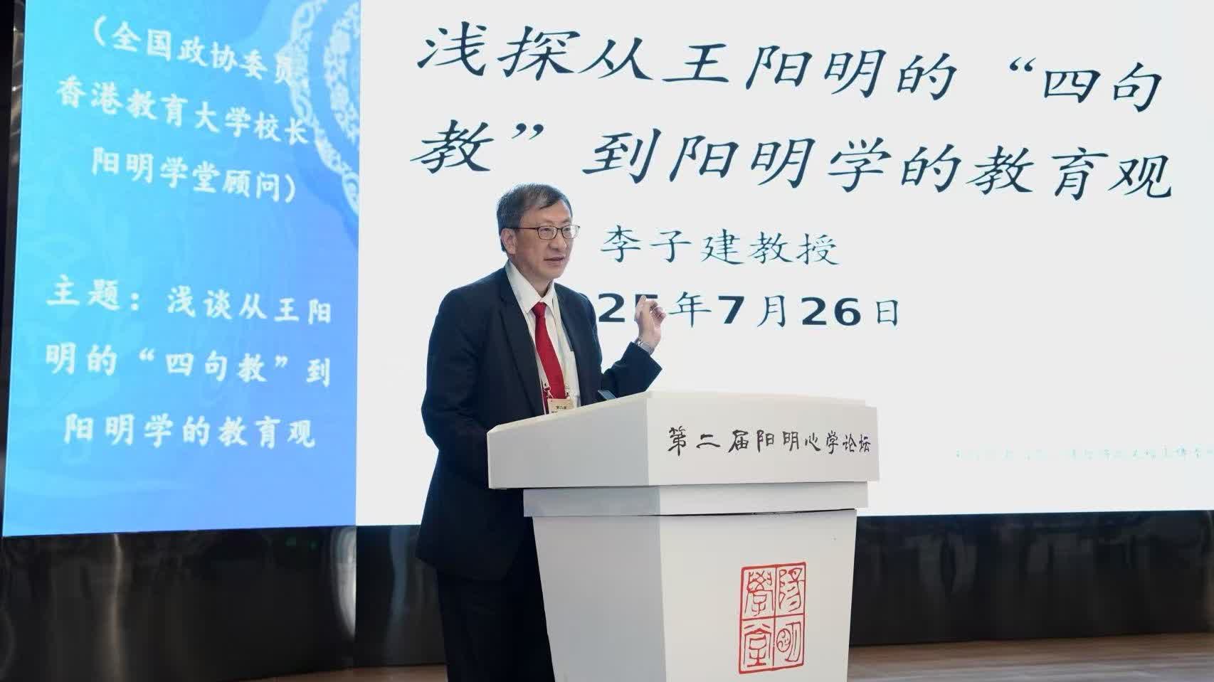 香港教育大學(教大)校長李子建教授應邀出席7月26日在貴陽開幕的第二屆陽明心學論壇,並發表題為《淺探從王陽明的「四句教」到陽明學的教育觀》的主旨演講。他以「四句教」作為切入點,深入剖析陽明心學的核心義理,呈現出陽明學理論的多元對話與歷史演進。演講同時探討陽明心學對教育的多重啟示,認為陽明心學同樣強調「立德樹人」,重視人才的內在修養與社會責任感培養,展現出陽明心學智慧對當代教育實踐依然具有重要啟發。