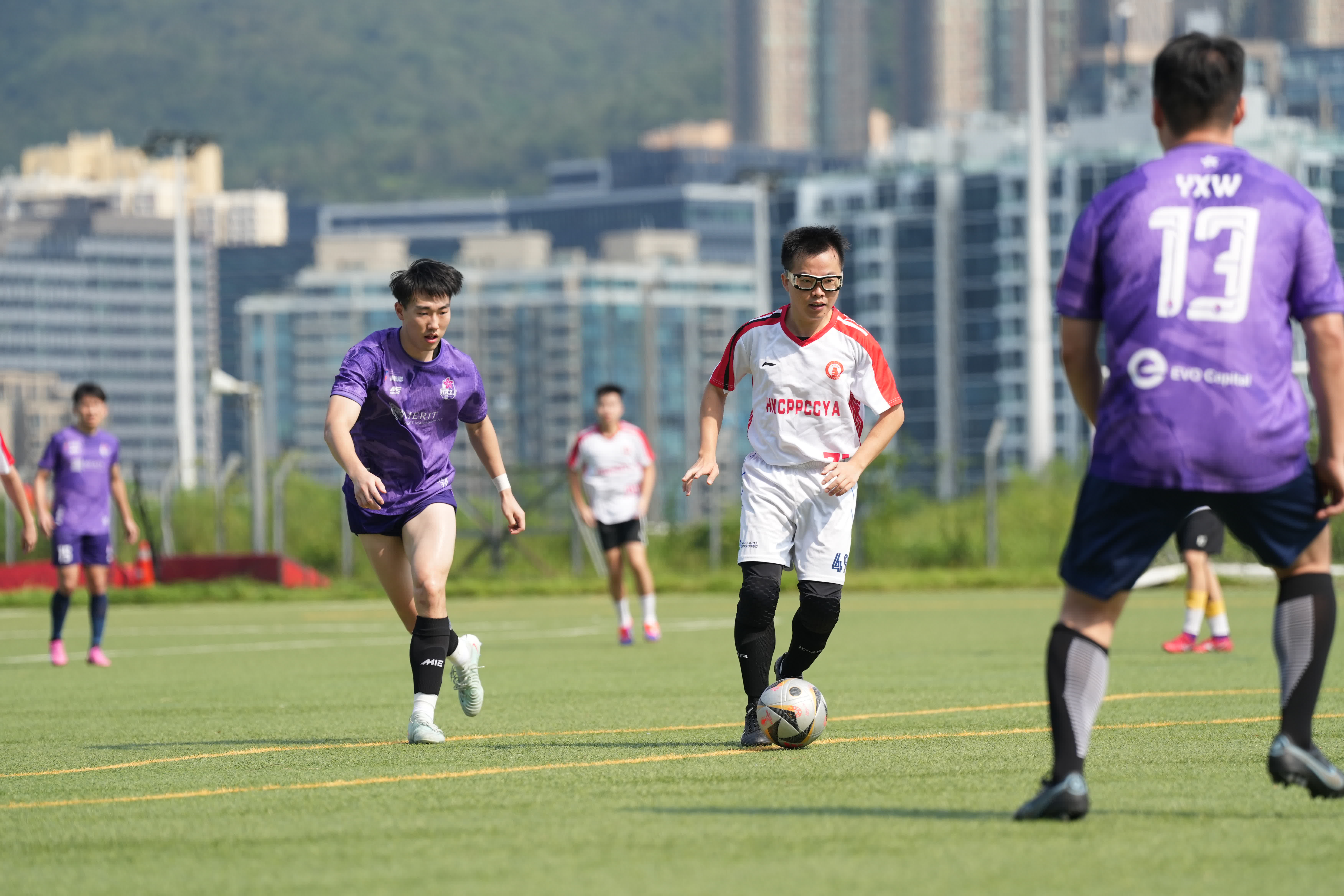 - 首場較量:香港政協青年聯會足球隊(白)0:2香港華菁青體聯奇跡足球隊(紫)