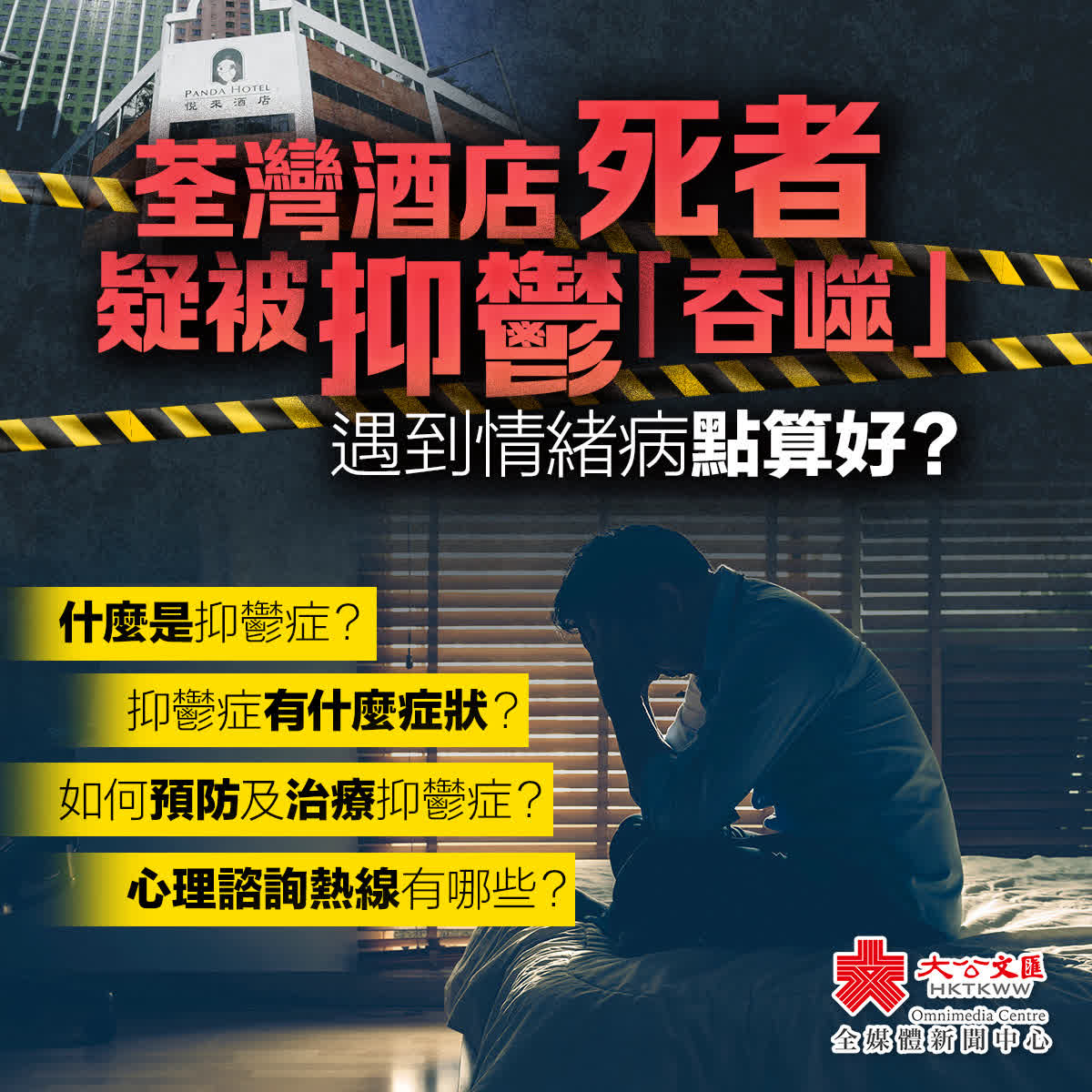 他呼籲任何人看到報道,發現身邊人持續受情緒困擾、情緒低落、無故失眠、失去動力,甚至有輕生念頭;又或自己亦受情緒困擾,覺得有事情無法解決,宜盡早找人傾訴,向專業人士如社工、臨床心理學家、精神科醫生尋求協助。他強調情緒病可以治療,得到適當治療,可完全康復,希望類似事件不會再發生。