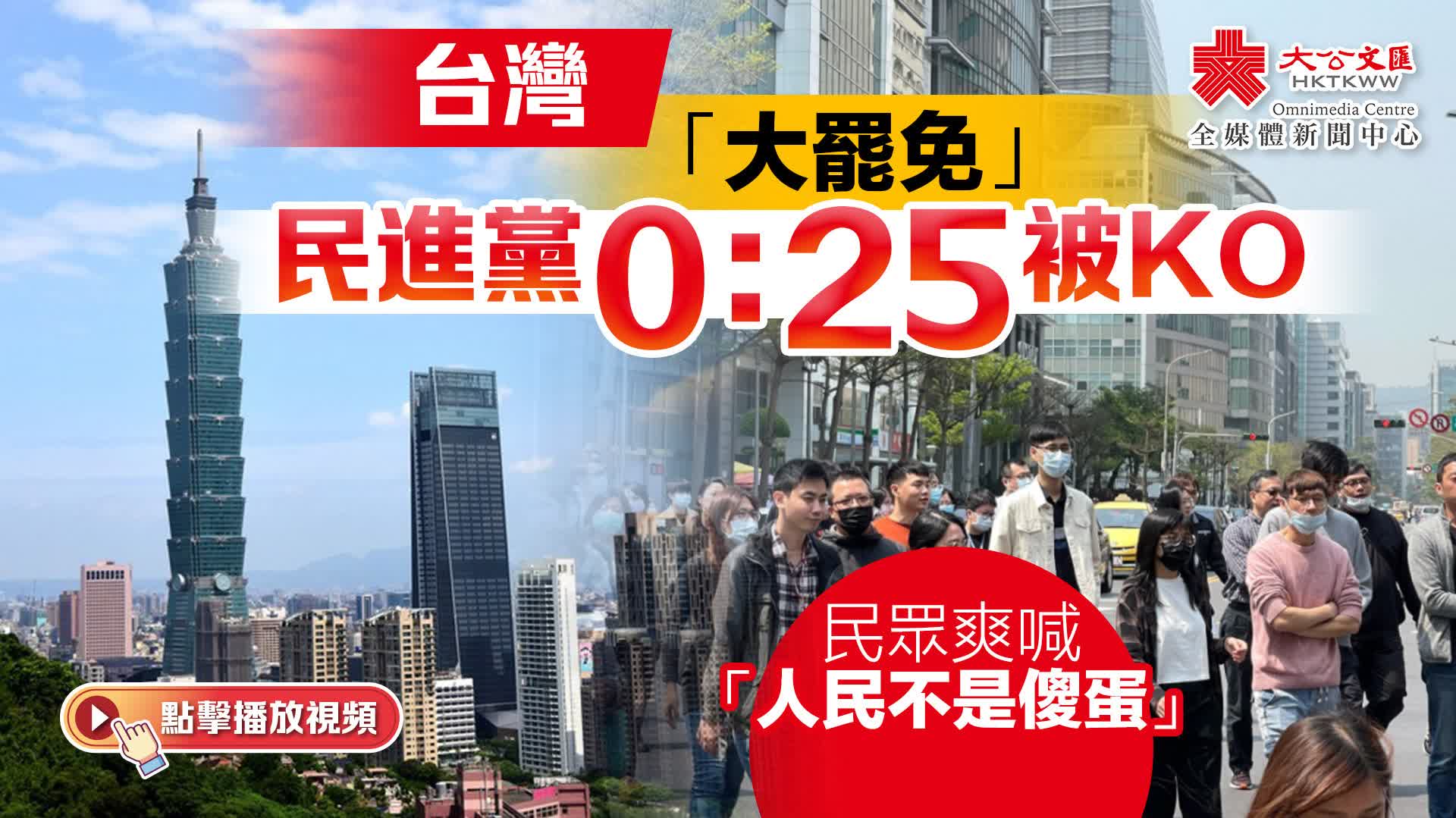 大公文匯全媒體報道,昨日(26日)台灣地區由民進黨支持者發動的針對24位國民黨民代及停職中的新竹市長高虹安的罷免投票結果出爐,針對25人的罷免案全軍覆沒無一通過,在野黨反「惡罷」取得完勝。