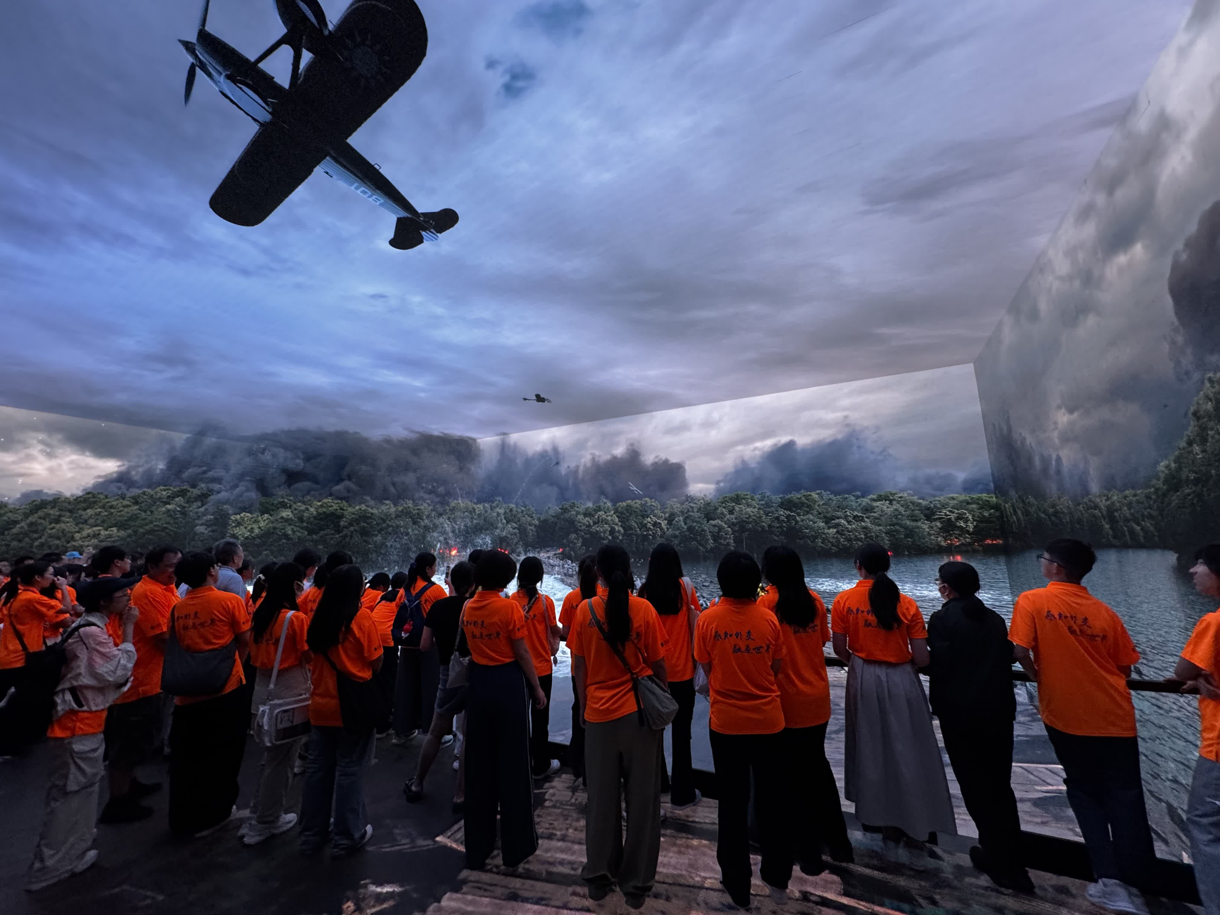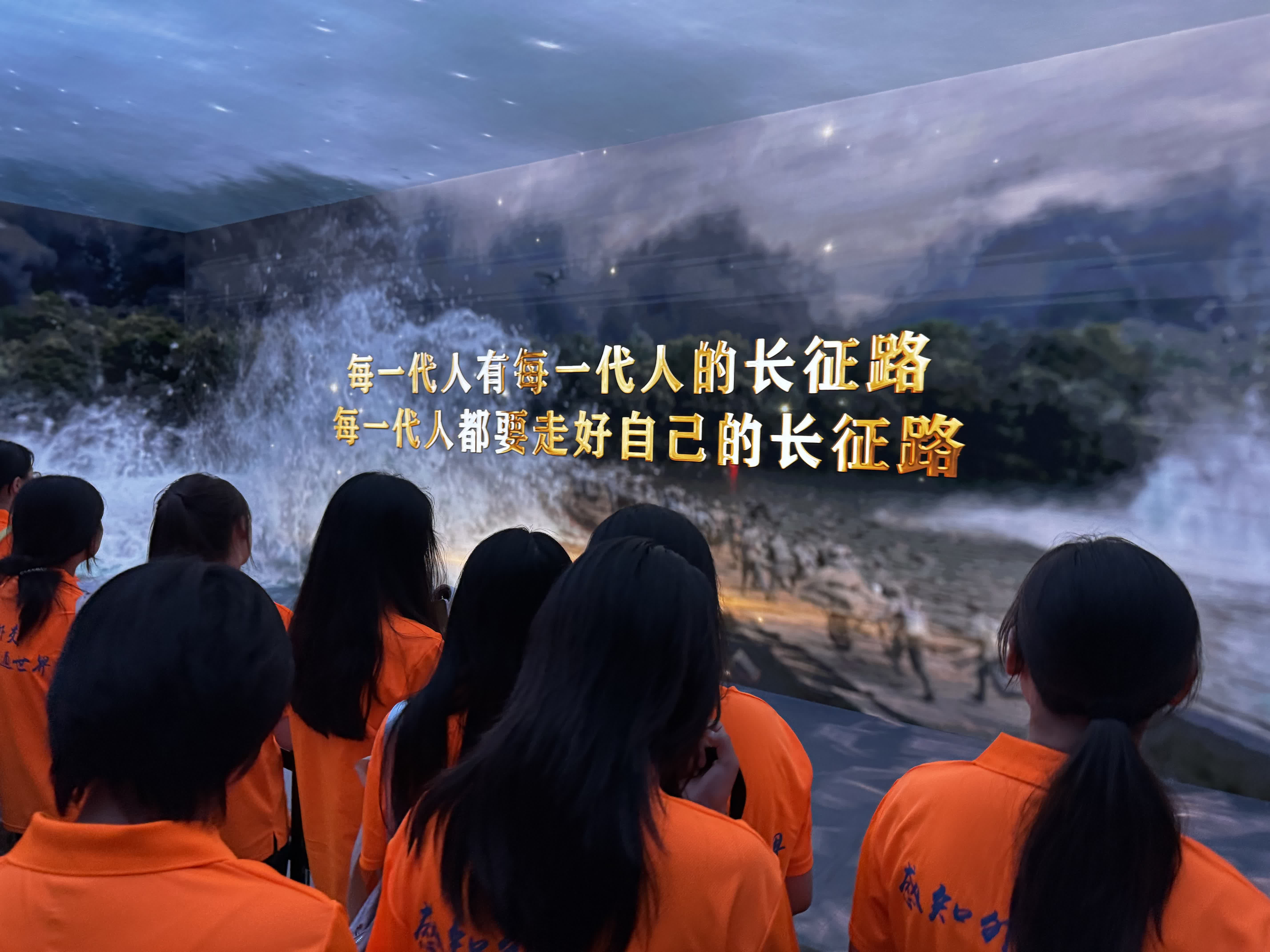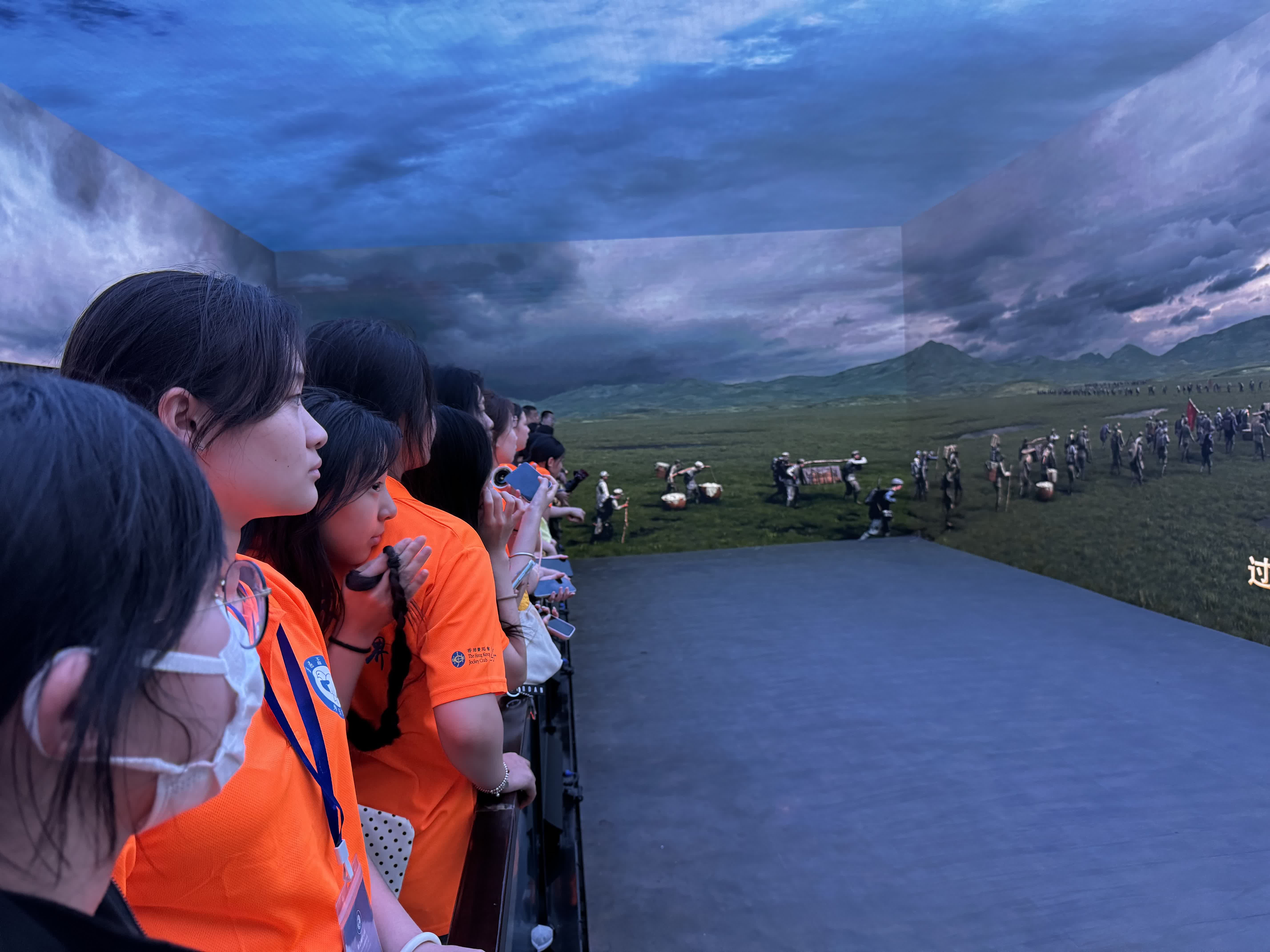 同學們還走進黨史館飛越中國影院,通過5D技術沉浸式觀影,在駕駛艙中飛越革命聖地,俯瞰大美中國,飛臨「中國車、中國路、中國橋、中國港」等重大工程,並跟隨嫦娥號登月、蛟龍號潛海等模擬場景,直觀感受我國各項科技成果。觀看完影片後,廖寶珊紀念書院王同學表示,這次參觀體驗後更加深切地感受到科教興國的重大意義。近年來,中國在科技領域取得了舉世矚目的成就,但一些「卡脖子」的技術難題依然存在,這更需要我們這一代人肩負起責任,攻堅克難、奮勇突破。自己本身就對科技領域有着濃厚興趣,希望未來能學習最喜歡的物理專業,為國家發展貢獻力量。