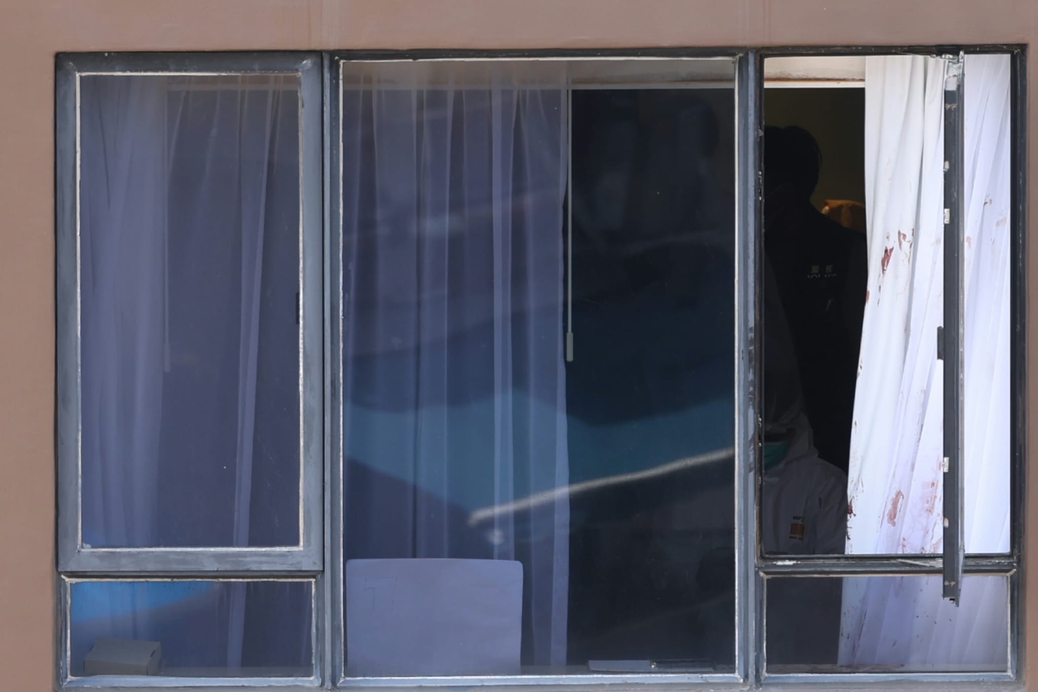案發於昨日凌晨4時45分,警方接報荃灣悅來酒店有人高處墮下,警員到場發現一名重傷昏迷男子,由救護車送仁濟醫院證實死亡。警員登上酒店到死者入住套房調查,因房門反鎖需要剪斷防盜鏈進入,赫見房間窗簾染有血漬,大廳梳化有一把染血彎曲廚刀,房間內一名墮樓男子的妻子倒臥大廳中間,其兩名6歲和3歲兒子分別在套房內兩間睡房的床上,3人頸部均有致命刀傷,現場證實死亡。