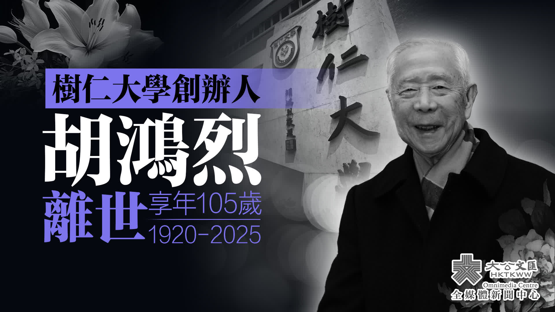大公文匯全媒體報道,香港樹仁大學創辦人、校監兼校長胡鴻烈昨日(27日)離世,享年105歲。教育局局長蔡若蓮對香港樹仁大學校監兼校長胡鴻烈博士辭世深表哀悼,並向其家人致以最深切的慰問。