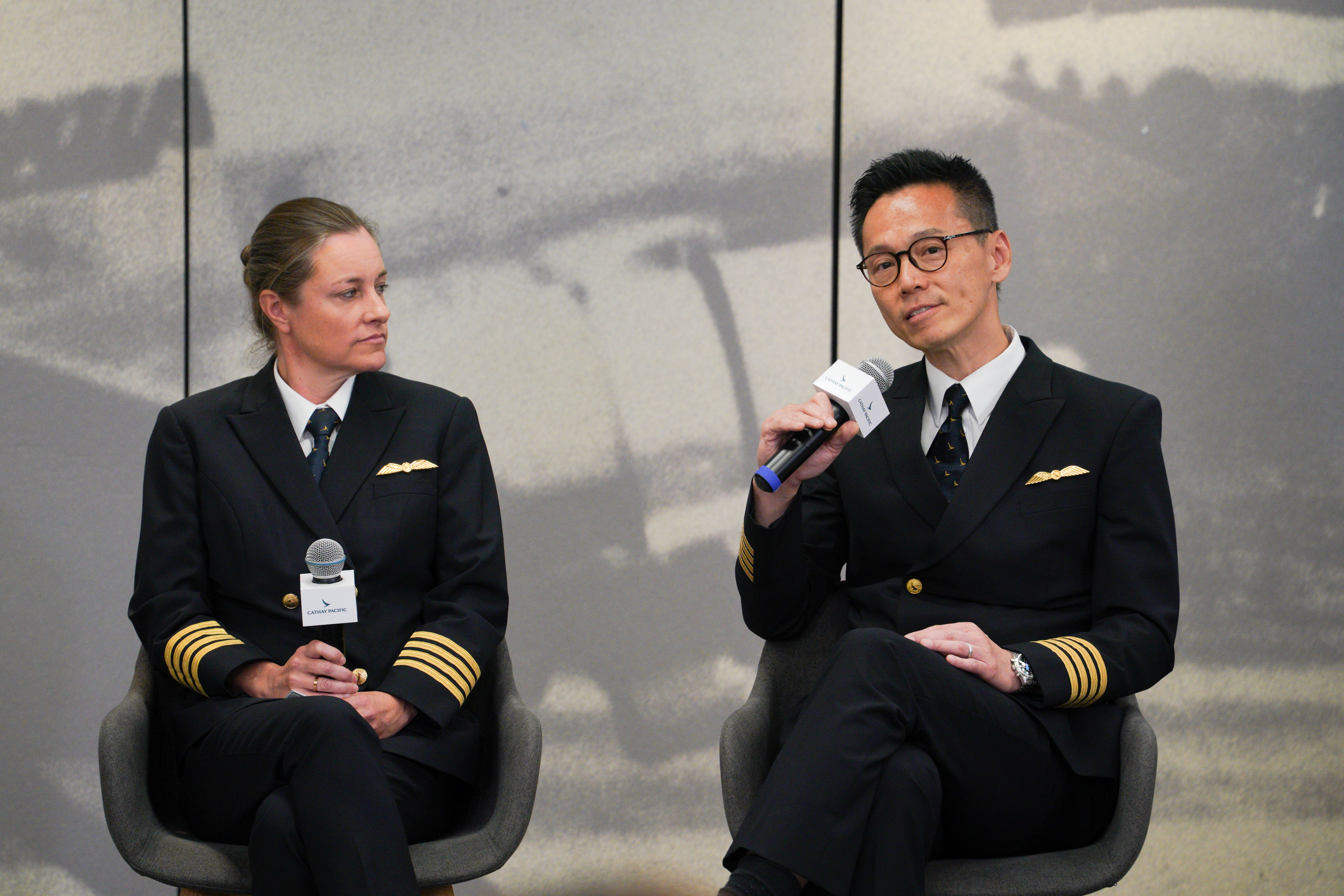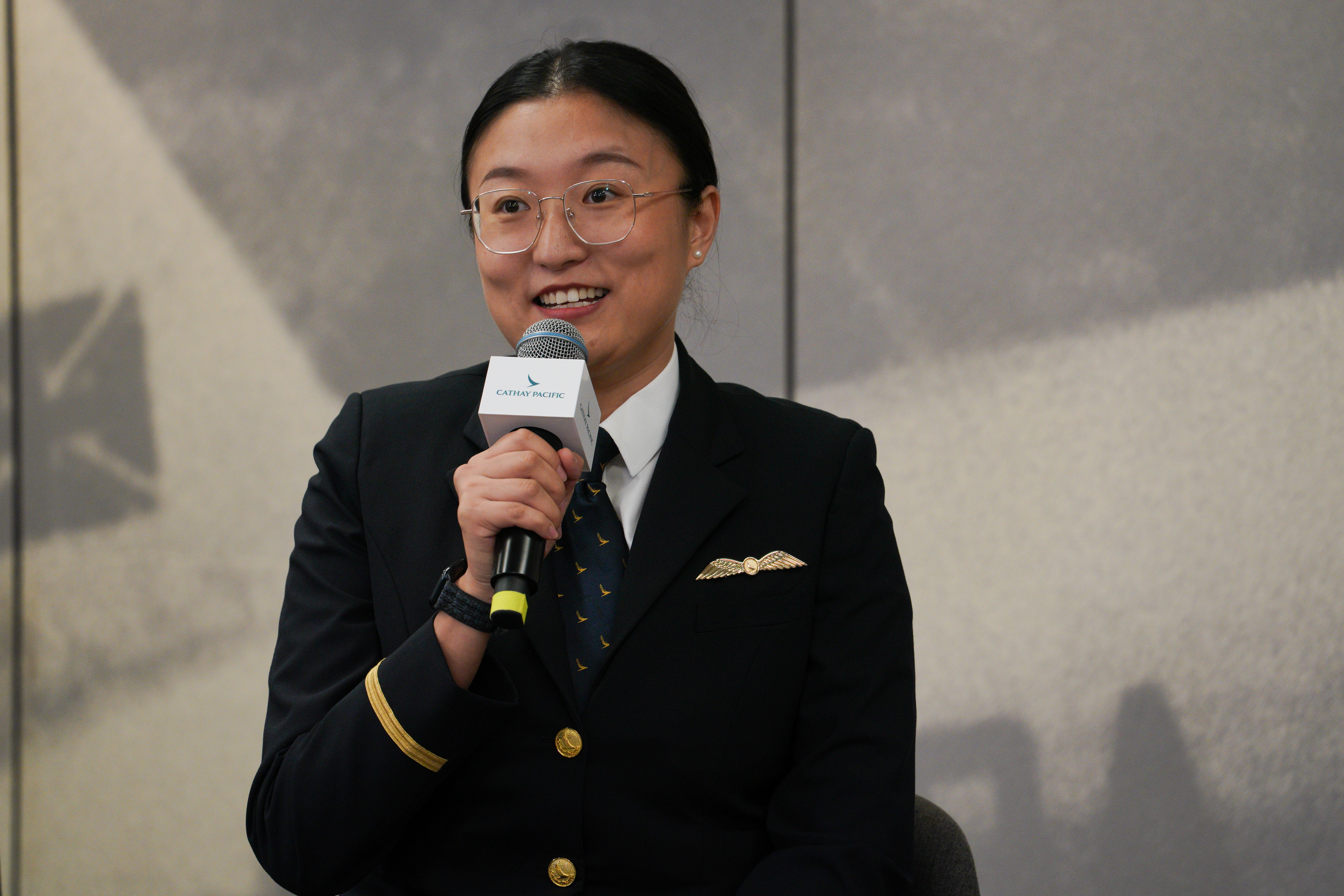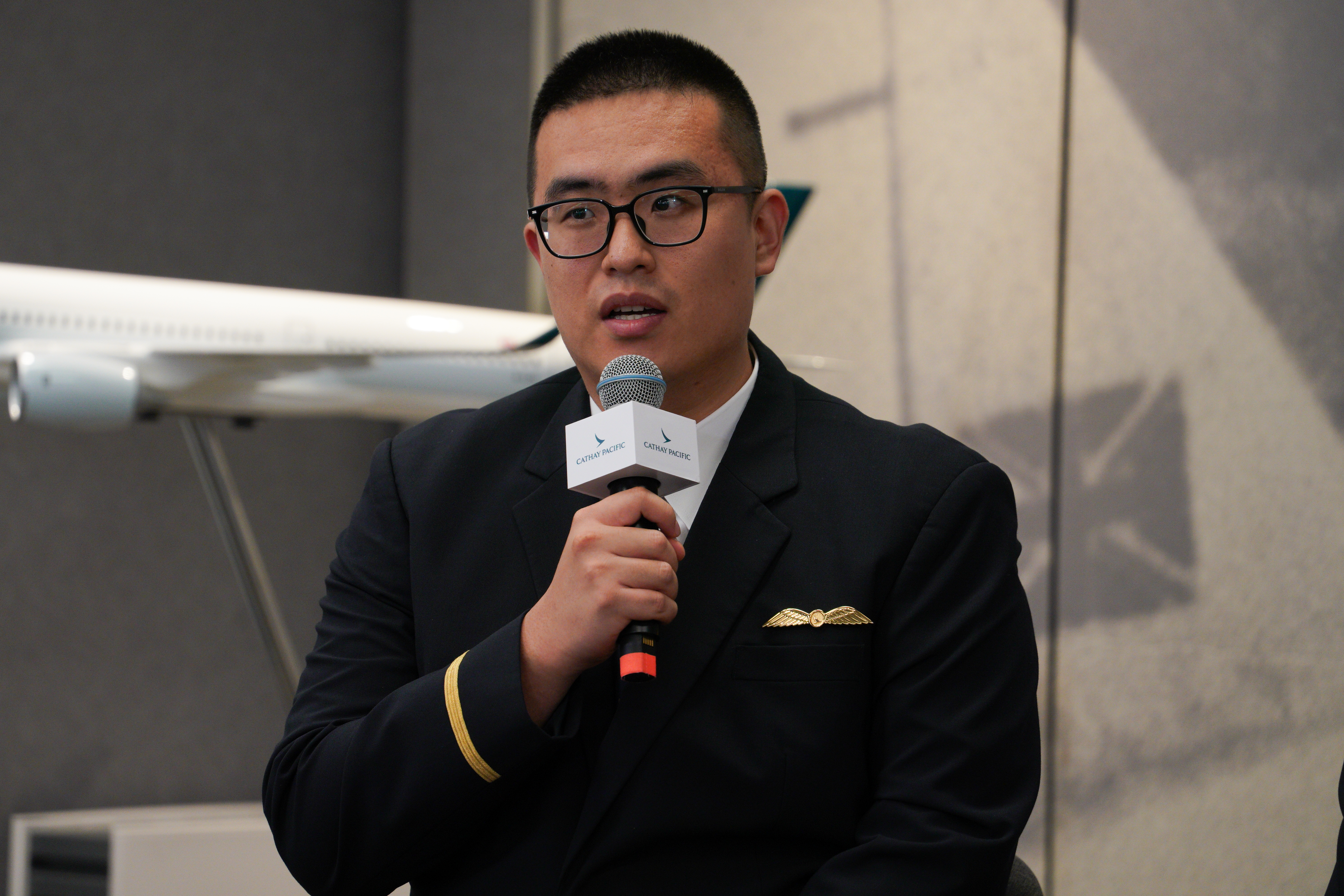 出席活動的還有兩名成功獲聘為國泰二級副機師的內地學員。孫鈺明(Robert Sun)分享,「曾經親眼目睹A380抵達北京的震撼畫面,自此便對成為機師大感興趣」。遺憾的是,自己從維吉尼亞理工大學電子工程及電腦工程系畢業,一直未有機會圓夢,只能加入國泰北京工程部任職機械員,近距離接觸飛機,他特別感謝國泰航空開放內地居民申請,給予他成為機師的機會。孫鈺明表示,成為機師後,充分感受到這份工作的魅力,尤其是與世界各地的老朋友見面,部分已經十多年不見。目前,太太與孩子搬到香港居住,有時候會抽空回北京探望父母及朋友。