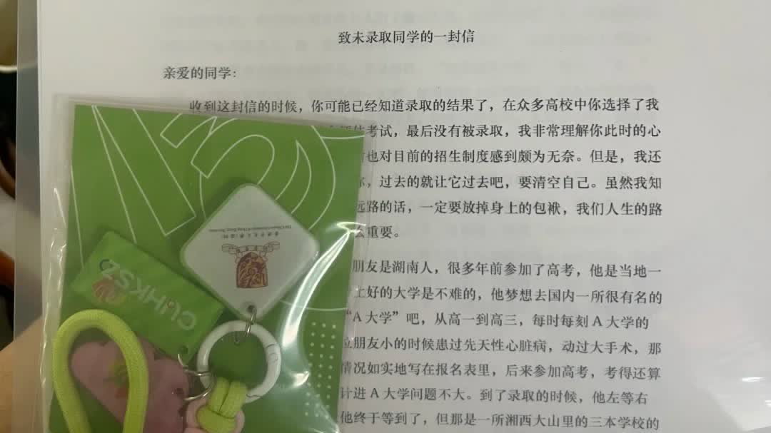 此事在網上引發了討論。有網友大讚這一做法十分暖心,有人文關懷,這封特別的信件和小禮物,是對未被錄取學生的尊重與鼓勵,能讓他們在失落之時感受到關懷,明白自身價值未被否定。