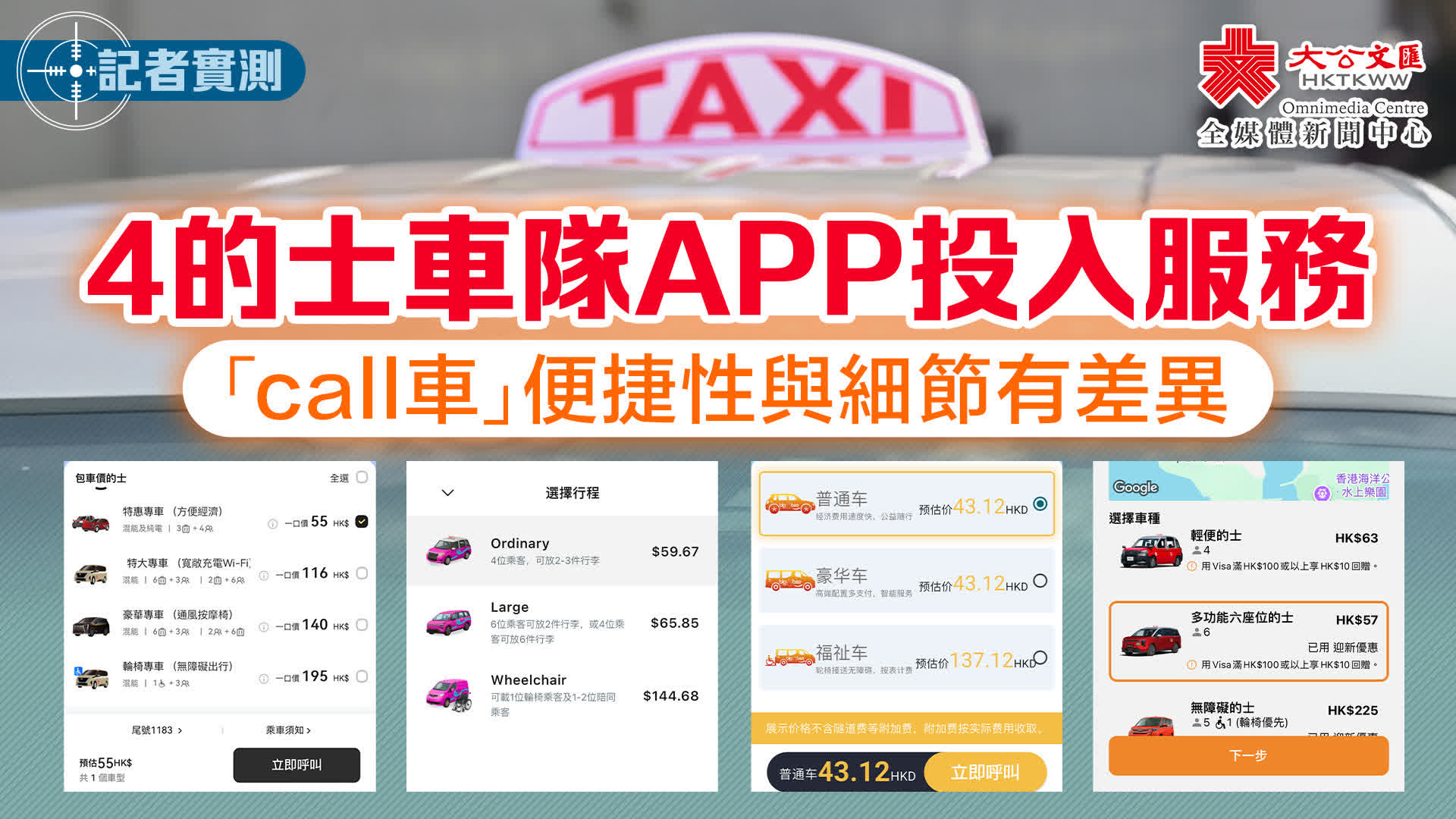 (大公文匯全媒體記者 梁譯尹 報道)運輸署今日(28日)宣布,4支的士車隊獲發正式的士車隊牌照,由今日起正式投入服務,包括Big Boss Taxi車隊、Amigo車隊、大黃蜂愛心車隊,以及樂行車隊。究竟4支車隊的call車應用程式體驗感如何,記者下載後以乘客身份進行實測。