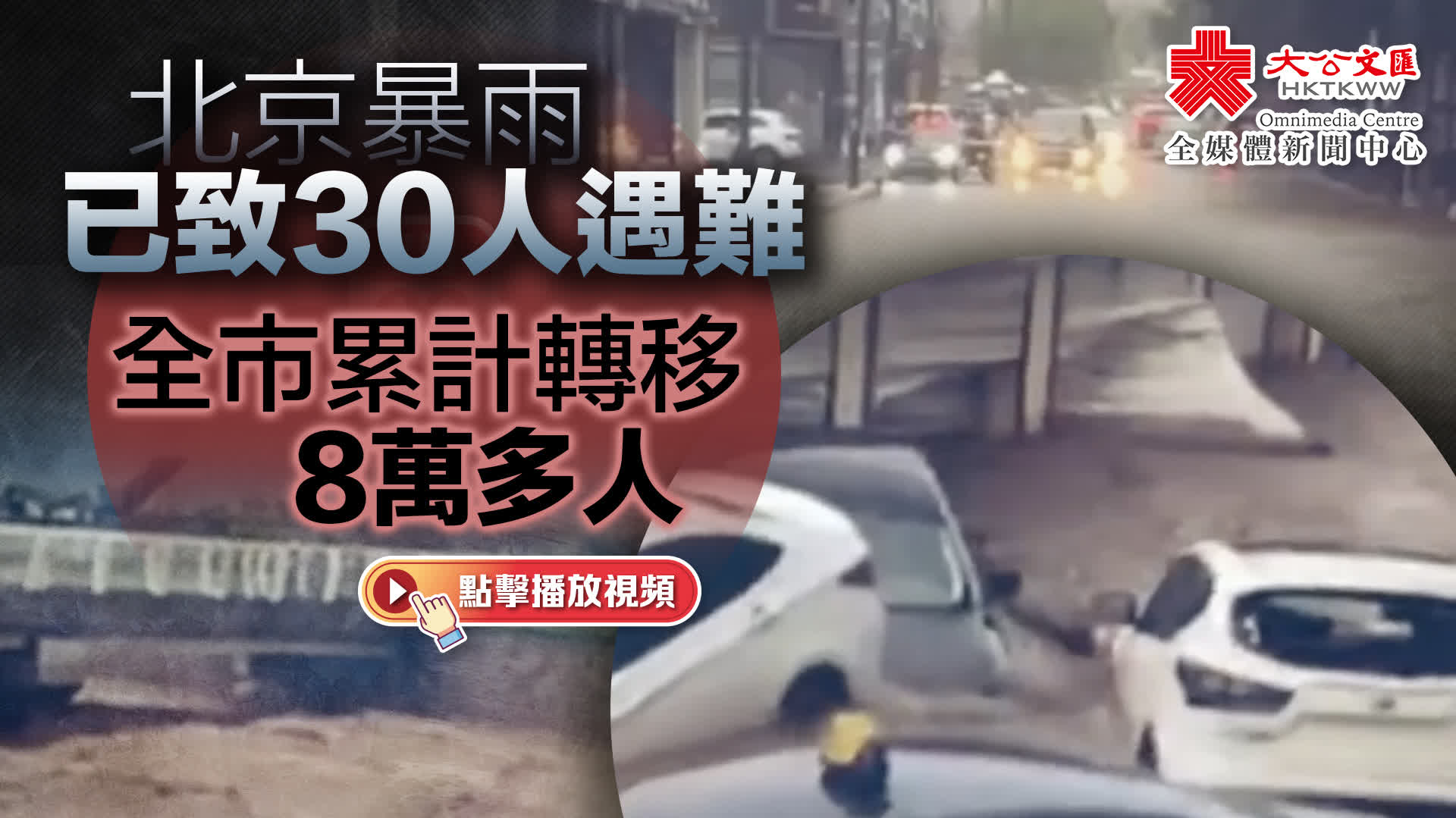大公文匯全媒體報道,華北地區自7月23日起持續較強降雨,部分水庫高水位運行、河道堤防出險,局部地區受災嚴重。央視新聞報道,截至28日午夜為止,北京因連續極端強降雨造成重大災情,全市因災死亡30人,其中密雲28人、延慶2人。