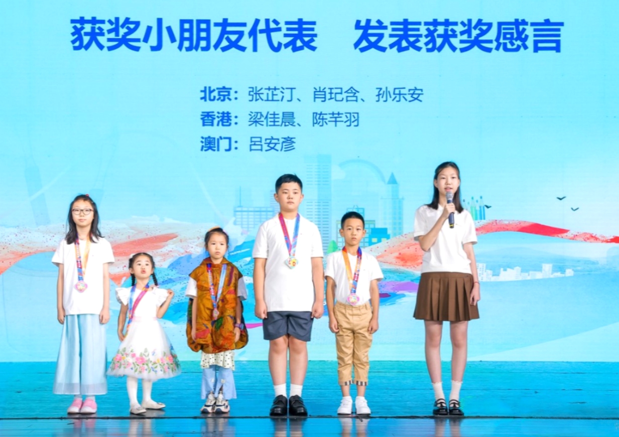 北京小朋友代表張芷汀、肖玘含、孫樂安,香港小朋友梁佳晨、陳芊羽,澳門小朋友呂安彥,在京台胞陳曉韻先後發表了獲獎感言,用他們童真的語言,表達了心中對繪畫的熱愛、對美好城市的理解及對美好生活的嚮往。除獲獎少年兒童外,本次活動還推選出31個優秀指導機構、17位優秀指導教師和25位優秀參與教師。活動現場為榮獲榮譽稱號的小朋友們、老師們頒發了紀念證書、紀念獎牌和紀念獎盤等。