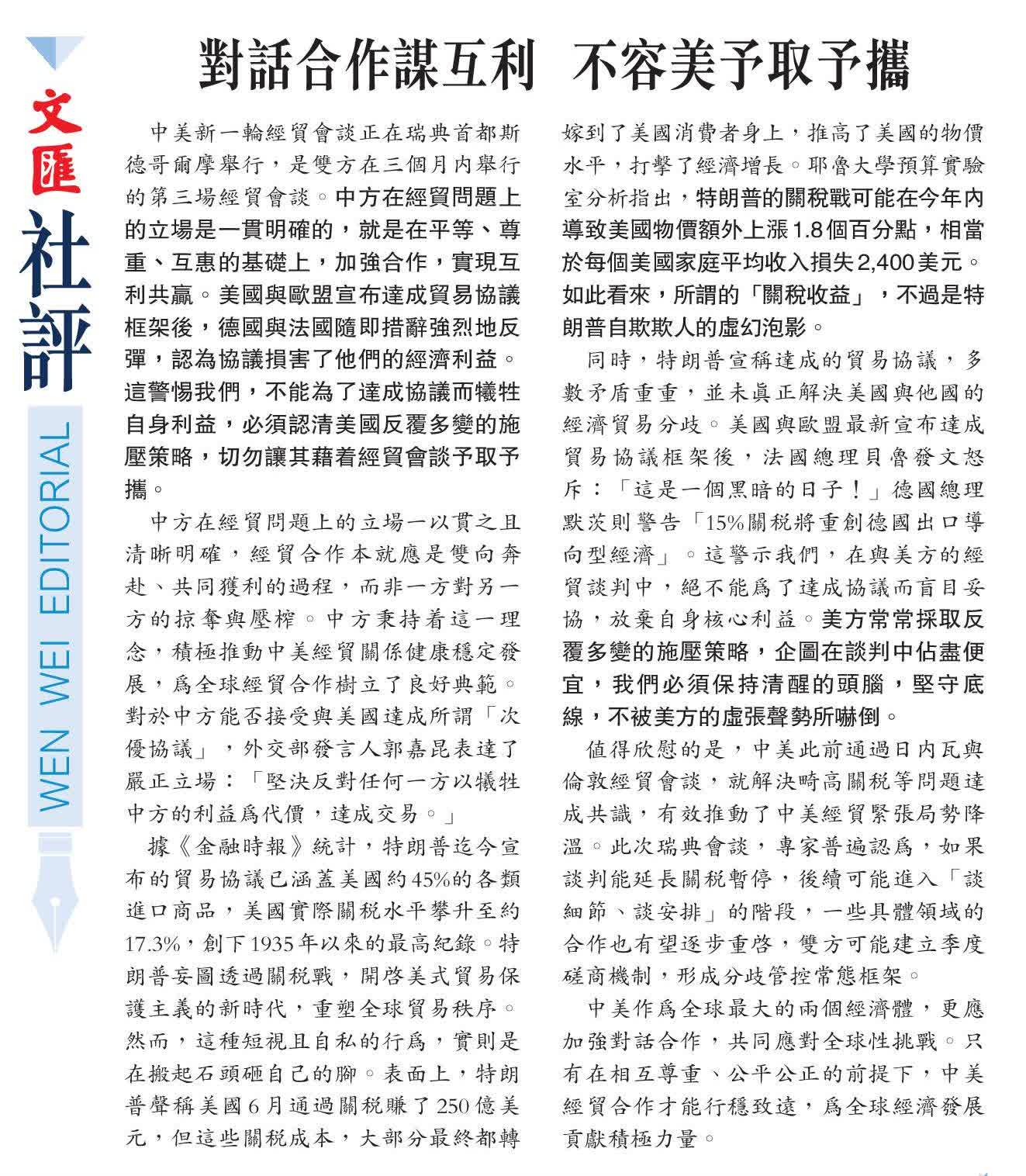 (來源:香港文匯報A06:要聞 2025/07/30)