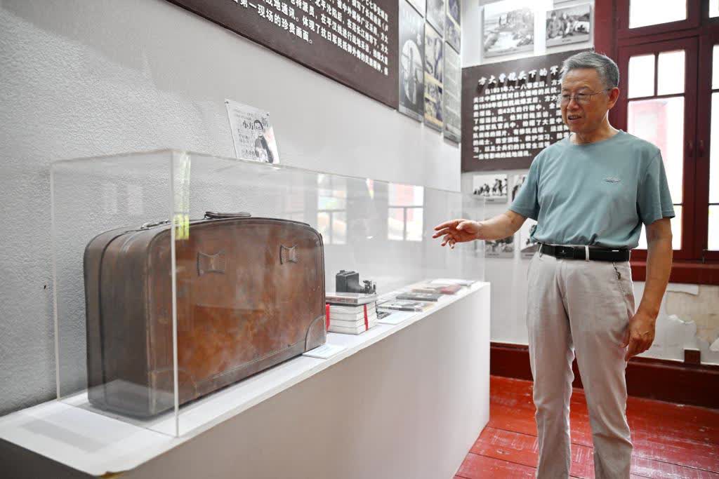 走進方大曾紀念室,不大的房間內,四面牆壁上布滿方大曾的新聞作品。在房間的一端,方大曾的半身銅像佔據着正中位置。在房間的另一端,玻璃展櫃裏一隻旅行箱常吸引參觀者駐足,這是方大曾唯一存世物品。