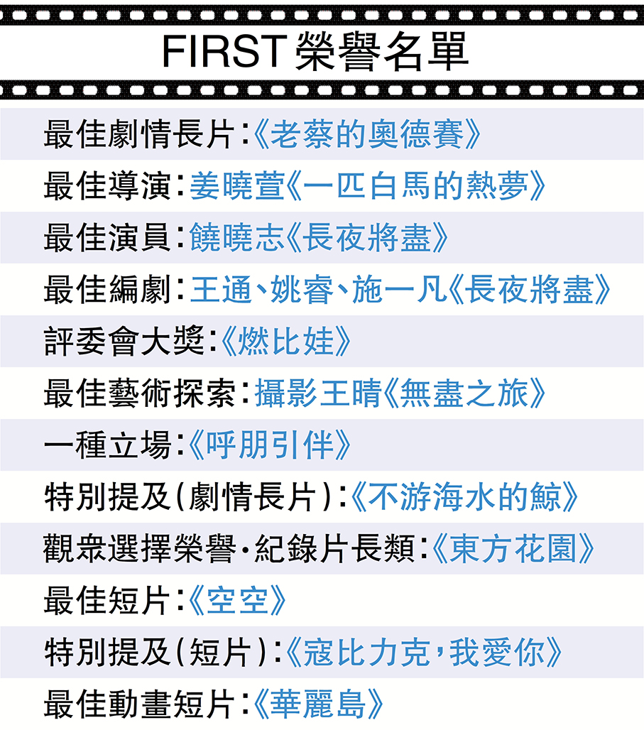 由劉金宇導演的影片《老蔡的奧德賽》摘得「最佳劇情長片」獎項,主競賽評委會主席伊莎貝爾·于佩爾和FIRST榮譽主席謝飛共同為劉金宇頒發獎項。該片圍繞大齡農村青年老蔡的返鄉婚戀展開,將現實與科幻世界交織呈現。劉金宇在發表獲獎感言時表示,這次主要是想找到更多創作的可能性,找到和他一樣在堅持做電影的人,希望找到同頻者,對於獲獎也完全是意料之外。「最開始我對做電影也沒有信心,但越做越發現,只要堅定做下去,是一定能成的。」