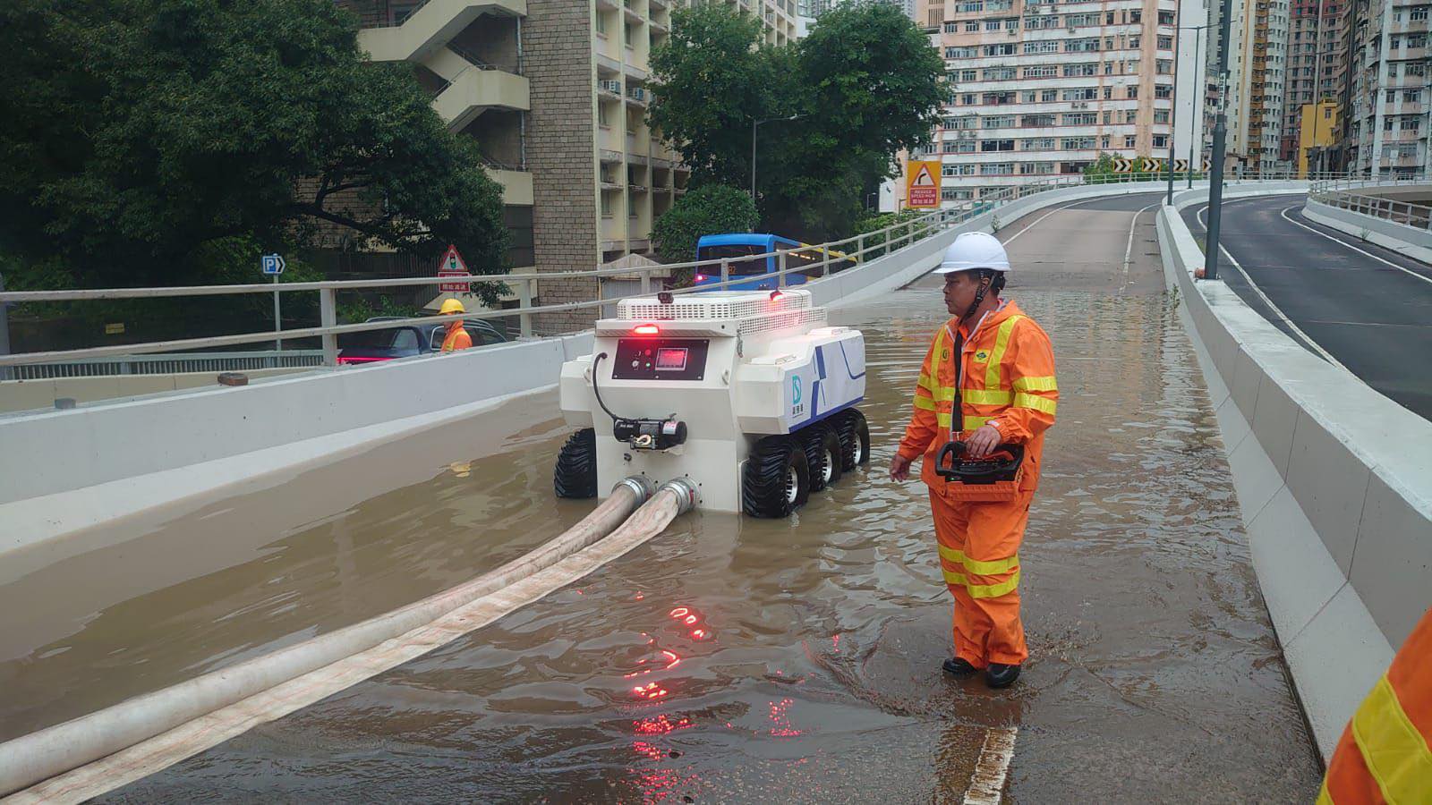 環翠邨地下停車場是傳統水浸黑點,立法會議員梁熙說,「以前通常一水浸就浸好耐,而家1至2小時便可完成清理」,反映政府各部門自2023年9月世紀大暴雨後,所作出一系列改善工程及應變措施有成效。他舉例指,渠務署剛於今年引入大型吸水機械人,繼早前10號風球首次出動,今次亦在黑色暴雨警告中協助泵走環翠邨停車場積水,效能非常顯著。