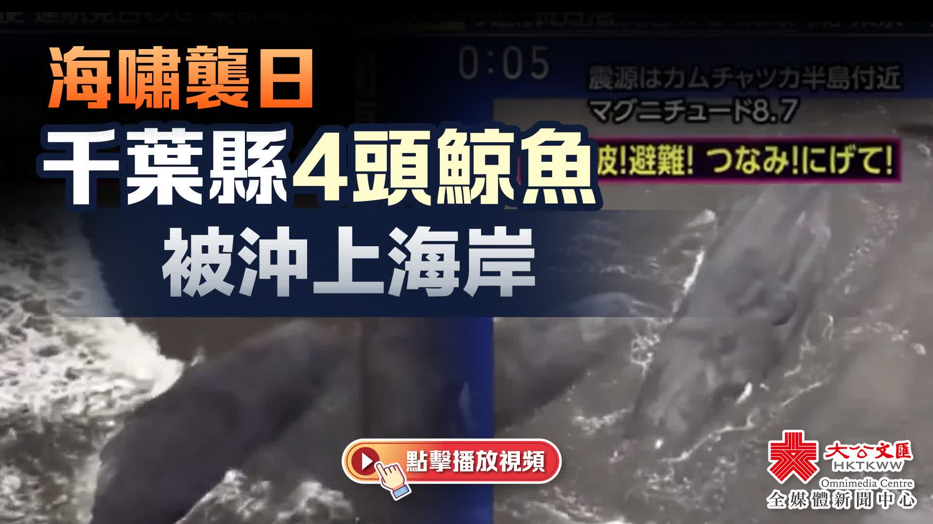 據報道,日本千葉縣九十九里濱出現海浪逆流向河道的情況,千葉縣海濱至少4頭鯨魚被沖上海岸並擱淺。