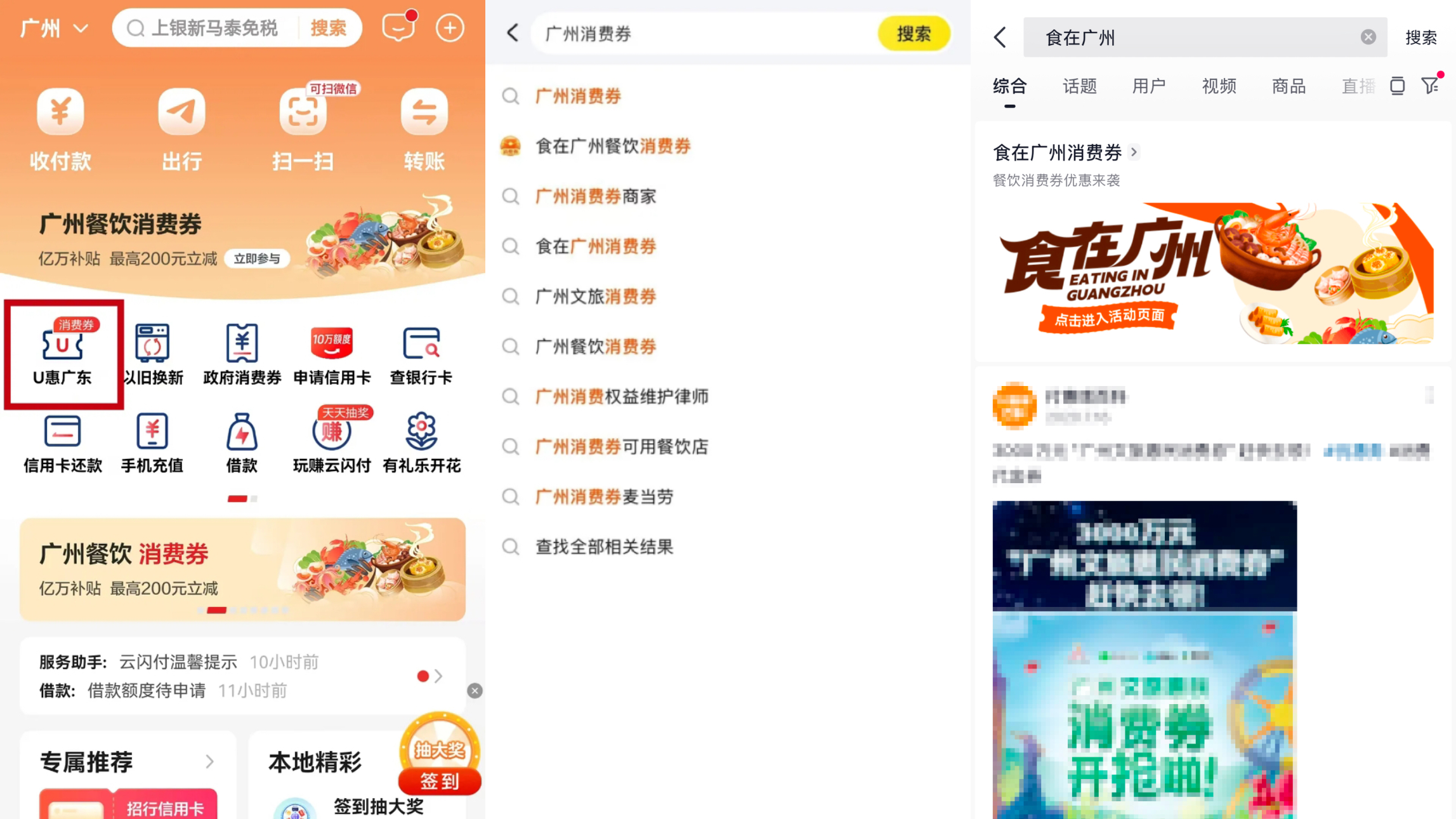 - 雲閃付APP:打開定位,點擊首頁「U惠廣東」領取;