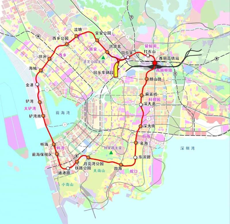 15號線是西部發展軸上關鍵交通走廊環形骨幹線路,承擔前海與南山、寶安中心便捷聯繫功能,配套支撐西麗綜合交通樞紐建設。預計2028年通車後,將提升科技園、寶安老城區南山後海等片區軌道覆蓋服務水平,對蛇口、高新北片區、留仙洞、前海寶中及大鏟灣片區西麗和未來科技城等重點片區的發展具有重要意義。