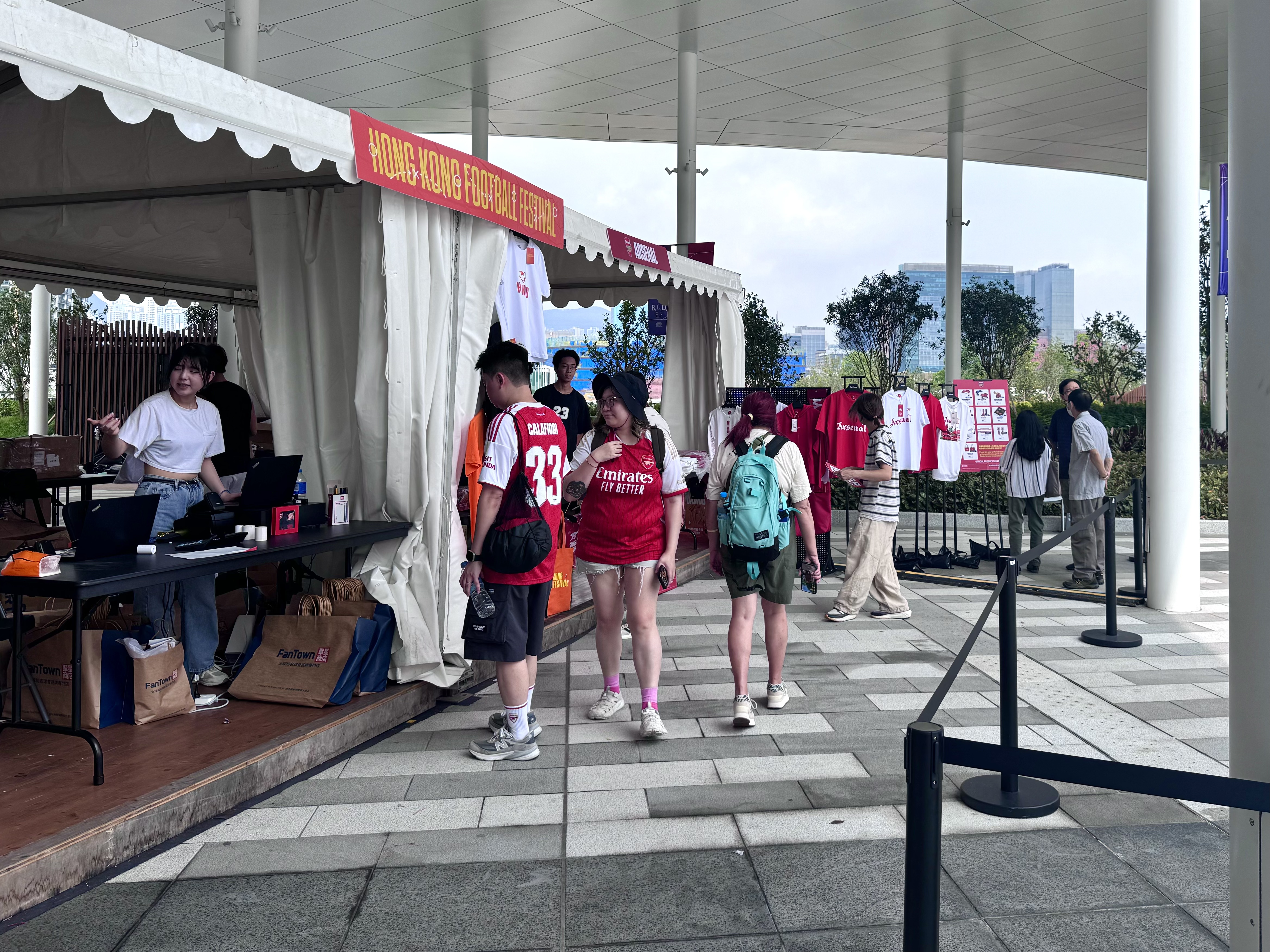 公開訓練於晚上6時開始,大公文匯全媒體記者提早到達場館發現,儘管艷陽高照、熱浪滾滾,大批身穿球衣的粉絲還是帶齊裝備,提前來到場館周圍打卡拍照,不少人還舉着自製的應援橫幅,球隊紀念品售賣處前也陸續有球迷排隊等候購買。