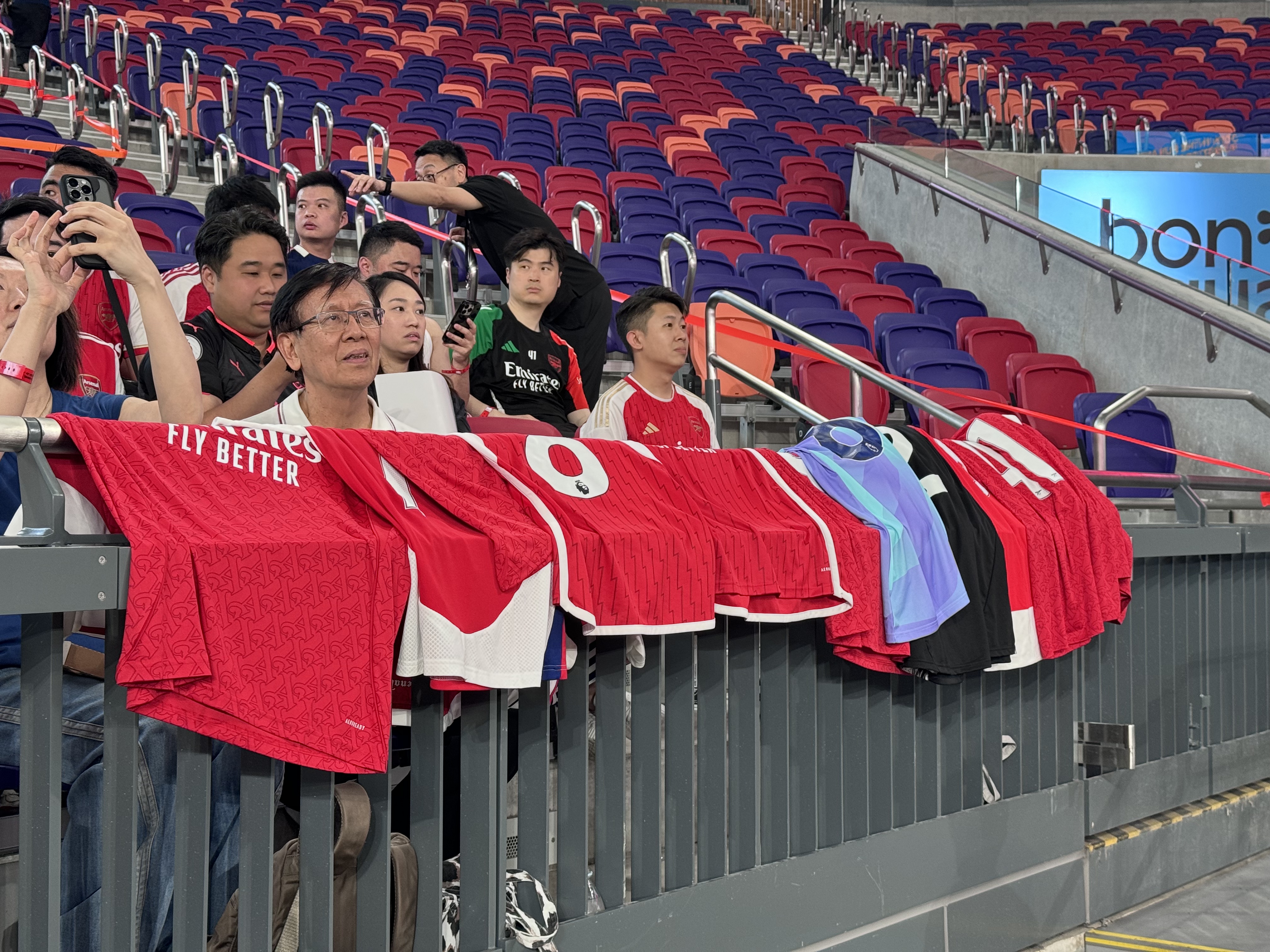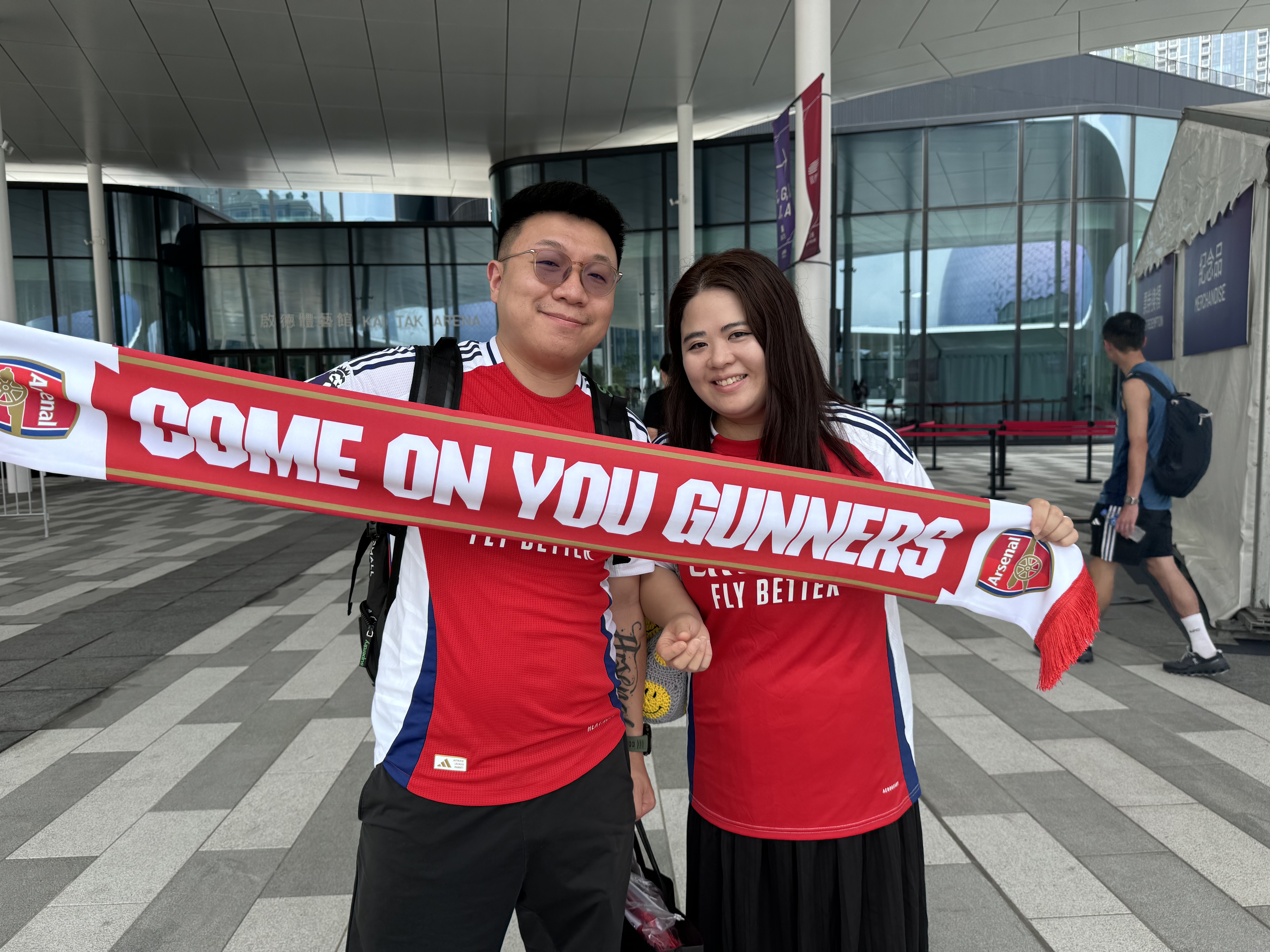 香港市民黃先生是阿仙奴的忠實粉絲,喜歡這支球隊已經十幾年了,最喜歡的球員是41號迪格蘭賴斯,「之前有在英國倫敦看過比賽,賽場的氣氛十分高昂,這次能夠在香港看到比賽心情十分興奮,這也是阿仙奴時隔多年再次來港,香港有很多球迷,相信場內氣氛也會不錯。」