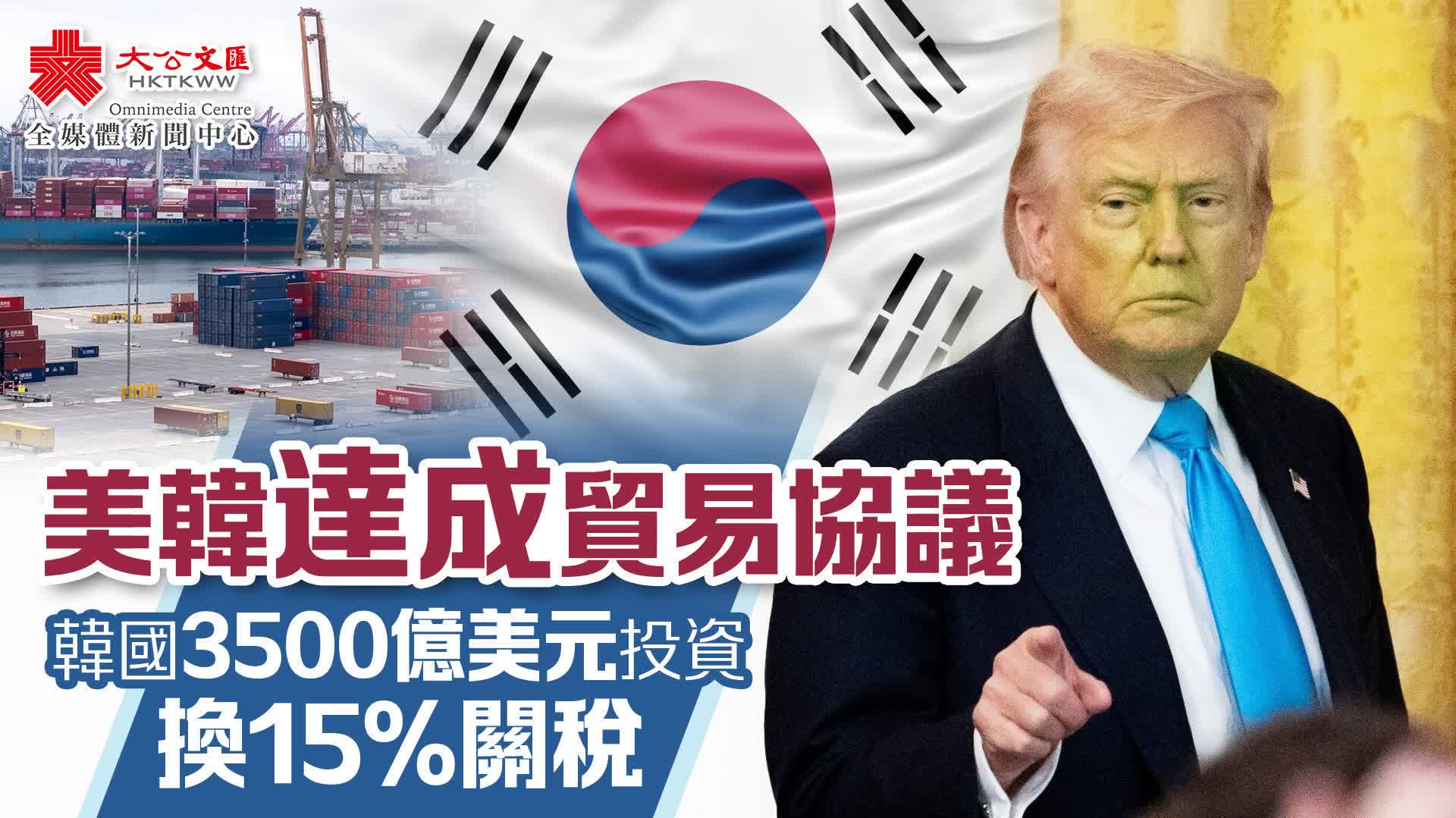 特朗普稱與韓國達成貿易協議 將對韓徵收15%關稅