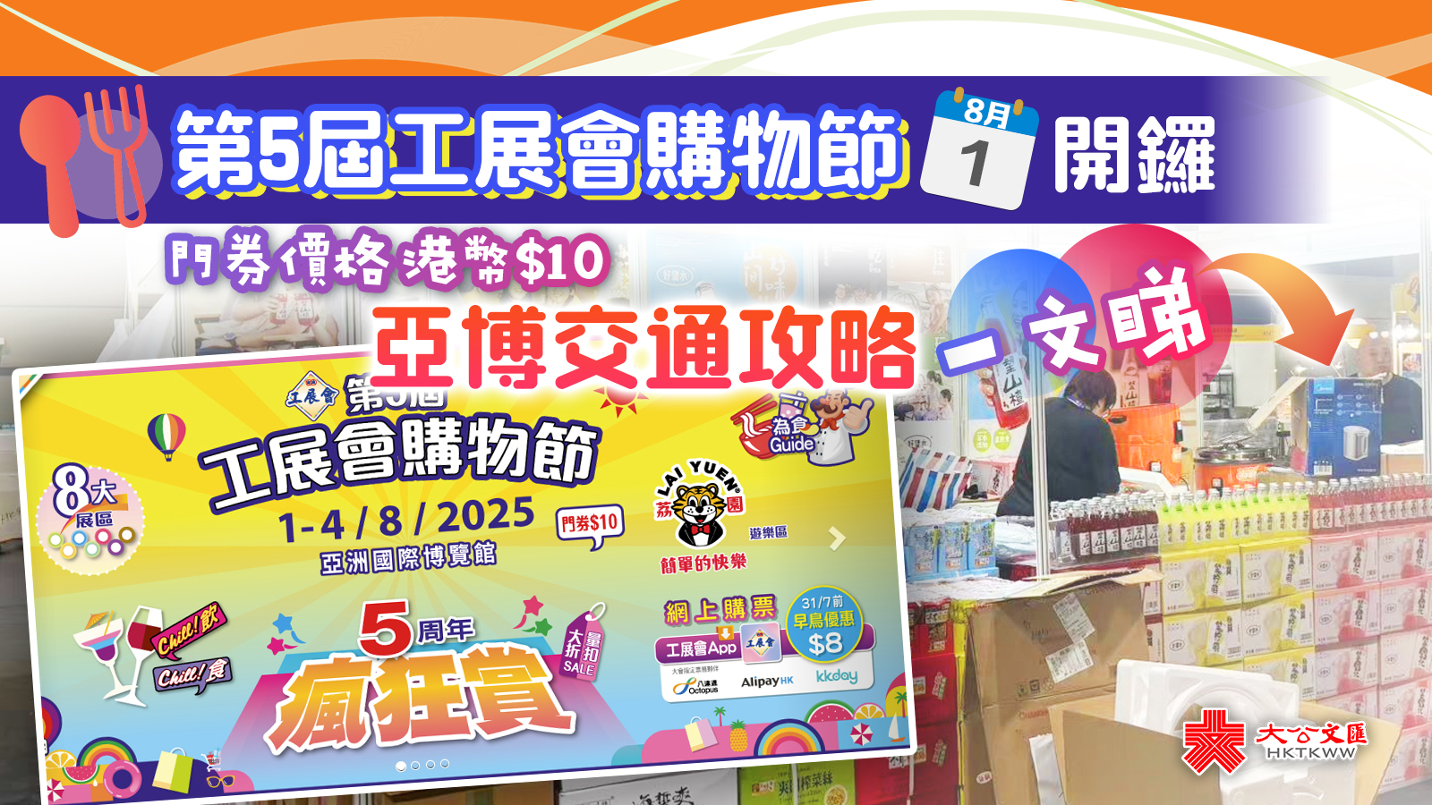 大公文匯全媒體報道,由香港中華廠商聯合會主辦的「第5屆工展會購物節」將於8月1日起一連5日在亞洲國際博覽館舉行。亞博館雖然遠離市區臨近機場區域,但無論由市區或口岸去購物節會場都非常方便,不僅有免費穿梭巴士,機場快綫亦會提供特別乘車優惠,此外全港多區都有巴士直達博覽館站。